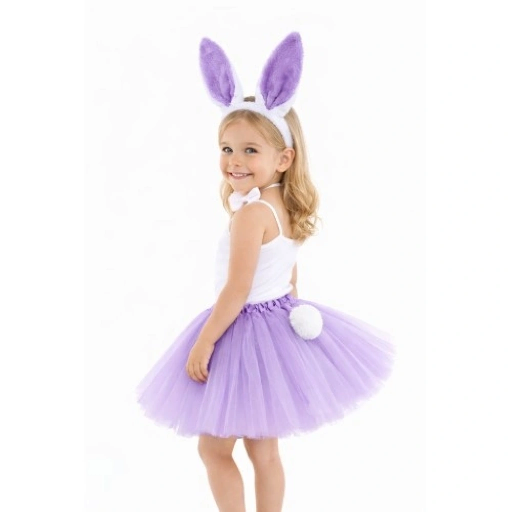 Lila Mor Tavşan Kostüm Seti | Tütü Etekli 4 Parça - Kız ÇocukZarafet ve sevimlilik bir arada! Lila Tavşan Kostüm Seti, morun en yumuşak ve şık tonuyla miniklerin sahne performanslarına masalsı bir dokunuş katıyor. Bale gösterilerinden okul etkinliklerine kadar her türlü organizasyon için tasarlanan bu set, hem estetik görünümü hem de rahat yapısıyla çocukların favorisi olacak.Set İçeriği: 4 Parça Tam TakımKarakteri tamamlayan tüm detaylar tek pakette toplandı:Lila Tütü Etek (35 cm): Çok katmanlı tül yapısı sayesinde kabarık ve hacimli bir duruş sergiler. Bel kısmındaki esneklik, çocuğunuzun rahatça hareket etmesine olanak tanır.Lila Tavşan Kulak Taç: Yumuşak dokulu kumaşla kaplanmış, lila detaylı sevimli tavşan kulakları.Beyaz Tavşan Papyon: Kostüme şık ve resmi bir hava katan, lastikli yapısıyla kolayca takılan aksesuar.Beyaz Kuyruk Ponpon: Kostümün arkasına sabitlenebilen, sevimli ve yumuşak tavşan kuyruğu.Öne Çıkan ÖzelliklerZarif Lila Tonu: Morun bu özel tonu, sahnede alışılmışın dışında, modern ve estetik bir duruş sergiler.Sahne İçin Tasarlandı: Hafif yapısı ve kabarık formuyla dans, bale ve tiyatro performanslarında görsel zenginliği artırır.Üstün Konfor: Çocukların hassas cildine uygun, yumuşak materyallerden üretilmiştir; kaşındırma veya batma yapmaz.Esnek ve Pratik: Standart çocuk boyu olan bu set, esnek bel yapısı sayesinde farklı yaş gruplarına ve bedenlere kolayca uyum sağlar.Kullanım AlanlarıBale ve Dans Gösterileri: Kabarık tütüsüyle ritmik hareketleri ve figürleri daha belirgin kılar.Okul Müsameleri: Karakter canlandırmaları ve koro gösterileri için ideal bir kostüm çözümüdür.Temalı Doğum Günü Partileri: "Alice Harikalar Diyarında" veya "Tavşan" temalı kutlamalarda şık bir stil oluşturur.Fotoğraf Çekimleri: Konsept stüdyo çekimlerinde estetik ve pastel bir görünüm elde etmek için kullanılır.Teknik Özellikler TablosuÖzellikDetaySet İçeriğiTütü Etek + Kulak Taç + Papyon + KuyrukEtek Boyu35 cm (Katlı Kabarık Tül)RenkLila / Mor Tonları & Beyaz AksesuarlarBedenStandart Çocuk Boyu (Esnek Yapı)Kullanım AmacıBale, Dans, Sahne Gösterileri, Parti