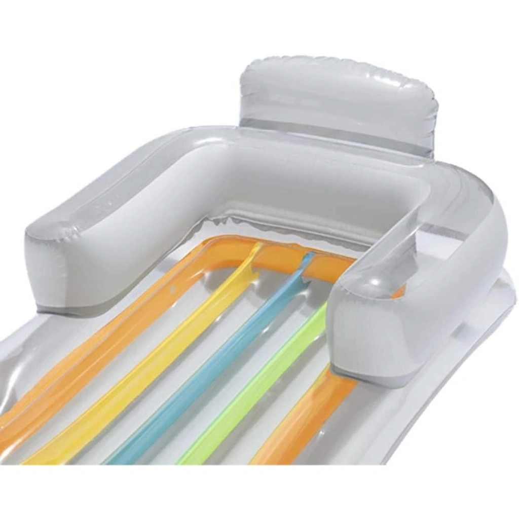 Lüks koltuklu deniz yatağı, 1.61 metre x 84 cm boyutunda olup, suyun tadını çıkarırken rahatlıkla dinlenmenizi sağlar. Şeffaf malzeme ile üretilen bu deniz yatağı, kullanıcıya konforlu bir yüzme deneyimi sunar. Koltuk tasarımı, deniz kenarında veya havuzda rahatça oturmanızı sağlar. İçecek tutma yeri ile keyifli bir deneyim sağlar. Suya dayanıklı ve yüksek kaliteli malzeme, uzun süreli kullanım sunar. Ayrıca, şişirilebilir özellikleri sayesinde taşıması kolaydır. Paket İçeriği1 Adet Lüks Koltuklu Deniz Yatağı
