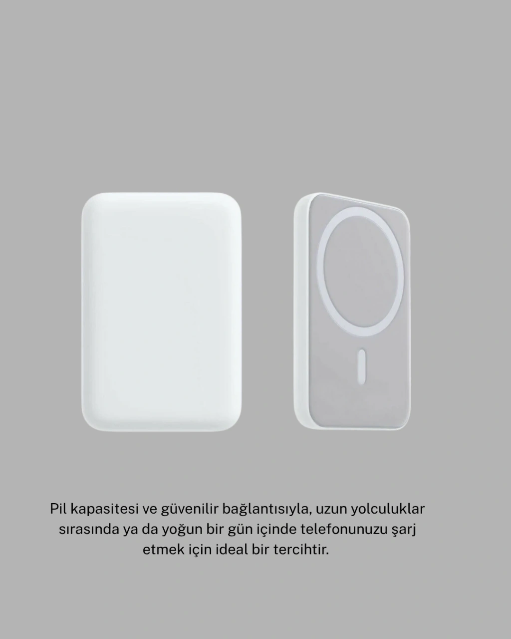 MagSafe uyumlu kablosuz batarya, hareket halindeyken bile cihazınızı zahmetsizce şarj etmenizi sağlar. Manyetik yüzeyi, iPhone’un arkasına güvenli bir şekilde tutunarak şarj sırasında kayma veya düşme riskini ortadan kaldırır. Cihazınızı bağladığınız anda otomatik olarak şarj etmeye başlar; manuel açma-kapama tuşuna gerek kalmadan kullanım kolaylığı sunar.27W hızlı şarj desteği, daha kısa sürede enerji dolumu sağlar. Lightning kabloyu taktığınızda, bataryanızı kablosuz şarj istasyonuna dönüştürerek 15W’a kadar kablosuz şarj imkanı sunar. Böylece hem kendi bataryanızı hem de cihazınızı aynı anda şarj edebilirsiniz.Kompakt, ince ve hafif yapısı sayesinde her an yanınızda taşıyabilirsiniz. Cebinize, çantanıza veya mont cebinize rahatça sığar. Dayanıklı malzemesiyle uzun ömürlü kullanım sunarken, şık görünümüyle Apple tasarım anlayışını yansıtır.Kredi kartları, uzaktan kumandalı anahtarlar gibi manyetik hassasiyet gerektiren cihazlara zarar vermeyecek şekilde üretilmiştir. Günlük kullanımda güvenli, pratik ve etkili bir şarj deneyimi yaşamak isteyen herkes için idealdir.MagSafe Battery Pack, modern yaşamın hızına ayak uyduran güçlü, zarif ve taşınabilir bir enerji çözümüdür.