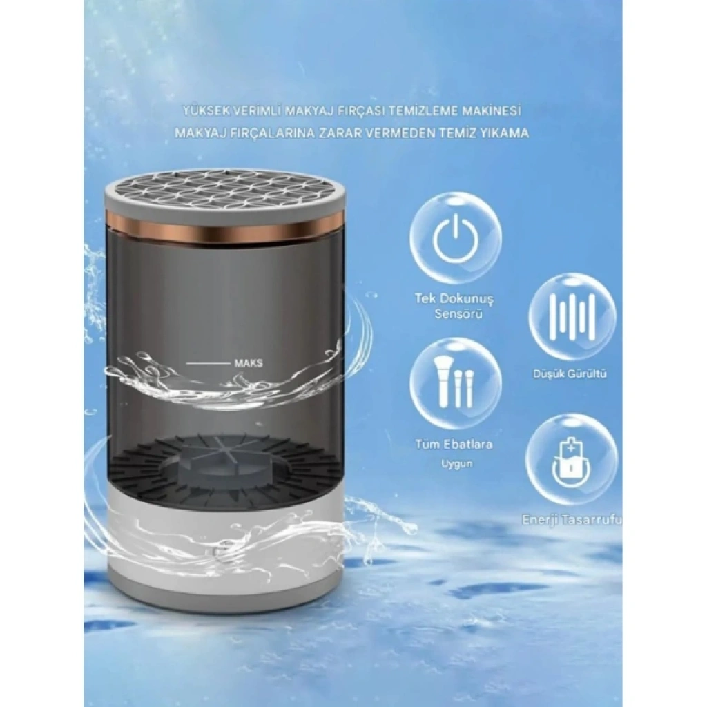 Makyaj fırçası temizleme makinesi, fırçalarınızı zahmetsizce temizlemenizi sağlayan pratik ve yenilikçi bir çözümdür. Tüm fırça boyutlarına uyumlu olarak tasarlanmıştır ve makyaj fırçalarına zarar vermeden derinlemesine temizlik sunar. Su haznesi üzerinde maksimum seviye göstergesi bulunur ve içerisine fırçalar kolayca yerleştirilir. Tek dokunuş sensörü sayesinde cihaz hızlıca çalışmaya başlar ve düşük gürültülü motoru ile konforlu bir kullanım sağlar. Enerji tasarruflu yapısı sayesinde çevre dostu bir üründür. Günlük makyaj rutininin hijyenik bir şekilde devam etmesi için ideal bir üründür. Paket İçeriği1 Adet Makyaj Fırçası Temizleme Makinesi