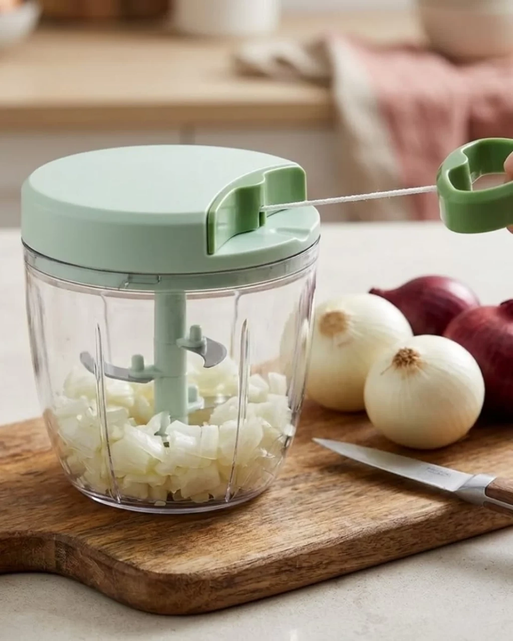 Pratik ipli doğrayıcı, mutfakta sebze doğrama işlemlerini daha hızlı ve kolay hale getiren kullanışlı bir mutfak ekipmanıdır. Çek-bırak mekanizması sayesinde bıçaklar hızla döner ve sebzeleri kısa sürede doğrar.Keskin bıçak sistemi sayesinde farklı sebzeleri etkili şekilde doğrayabilir. Soğan, sarımsak, havuç, biber ve benzeri birçok gıda kolayca hazırlanabilir. Bu özellik özellikle yemek hazırlıklarında büyük kolaylık sağlar.Elektrik gerektirmeden çalışması sayesinde her ortamda kullanılabilir. Kamp, piknik veya elektrik olmayan alanlarda bile rahatlıkla kullanılabilir.Garanti Bilgisi:Ürün garantili olarak gönderilmektedir. Üretim kaynaklı oluşabilecek sorunlara karşı güvence altındadır.