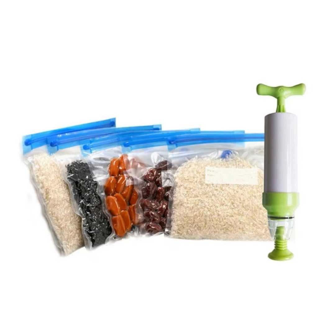 Manuel Vakumlu Gıda Saklama Poşeti ve Pompa Seti, gıdaların hava almasını engelleyerek taze kalmasını sağlayan mükemmel bir çözüm sunar. Sous Vide pişirme yöntemiyle uyumlu olarak tasarlanmıştır. Set, tekrar kullanılabilir vakumlu poşetler ve manuel vakumlama işlemi için el pompası içerir. Vakumlu poşetler, gıdaların daha uzun süre taze kalmasını sağlar ve BPA içermeyen sağlıklı plastik malzeme ile üretilmiştir. FDA onaylı bu set, gıda saklama işlemini daha hijyenik ve verimli hale getirir.Kullanımı son derece kolaydır, gıdanızı vakum poşetinin içine yerleştirin.Poşetin ağzını özel klips ile kapatın.Poşetin vakum valfine pompayı yerleştirin.Pompayı yukarı-aşağı hareket ettirerek havayı dışarı çıkarın.Gıdanız artık hava almaz ve tazeliğini korur.Bu ürün, özellikle et, sebze, balık, peynir, kuruyemiş ve kahve gibi hassas gıdaları saklamak için idealdir. Aynı zamanda gıda israfını önler ve daha düzenli bir buzdolabı düzeni sağlar. Paket İçeriği1 Adet Manuel Vakumlu Gıda Saklama Pompası15 adet vakumlu poşet