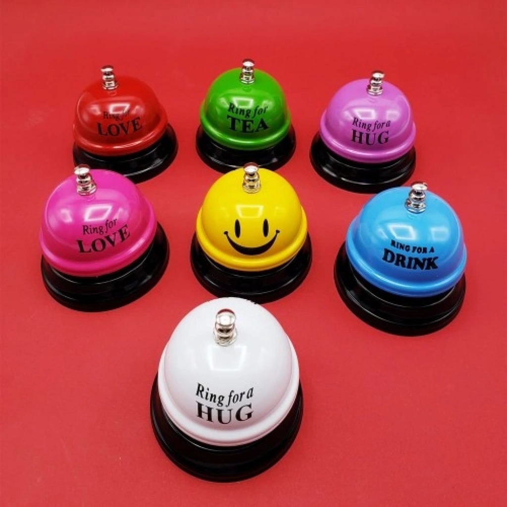 MASAÜSTÜ RESEPSİYON ZİLİ Masaüstü Resepsiyon Zili tamamen metal malzemeden üretilmiş olup dayanıklı ve uzun ömürlü bir kullanım sunar. Resepsiyon, danışma, kafe, restoran, ofis ve iş yerlerinde hızlı iletişim sağlamak için ideal bir üründür.Ürün 7 farklı renk seçeneğine sahiptir ve siparişlerde karışık renk ve görsellerde gönderim yapılmaktadır. Hem işlevsel hem de dekoratif bir masaüstü aksesuarı olan resepsiyon zili, pratik kullanımı ile dikkat çeker.Ürün Ölçüsü: Çap: 6.5 cm