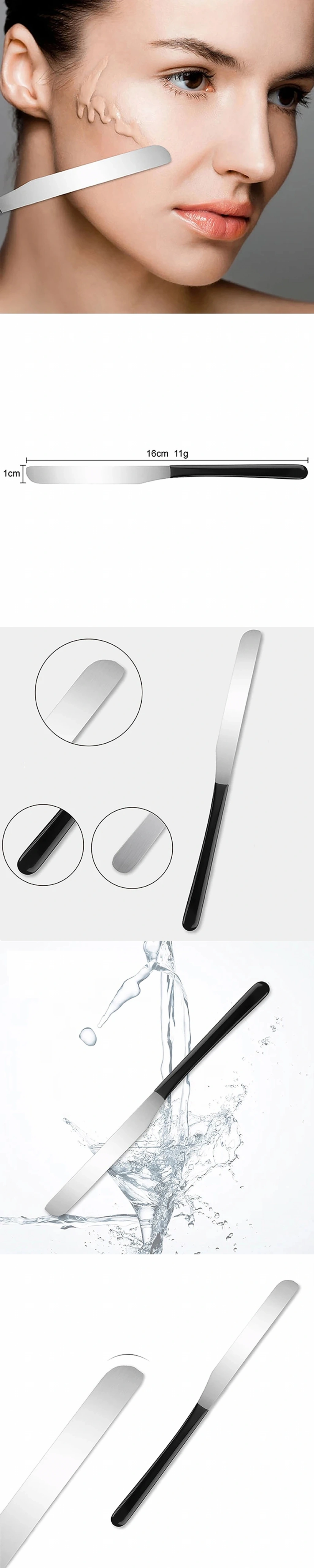 Paslanmaz çelik kozmetik spatulası profesyonel salonlar veya aileler için çok uygundur. Bir partide olduğunuzda veya dışarı çıktığınızda çantanıza konacak kadar küçükler. 5. Renk karıştırma çubuğu, makyaj renk karıştırma, maske, ağda vb için kullanılabilir. Gelişmiş işleme teknolojisi ile, yumuşak, hassas ve kullanımı güvenlidir.
