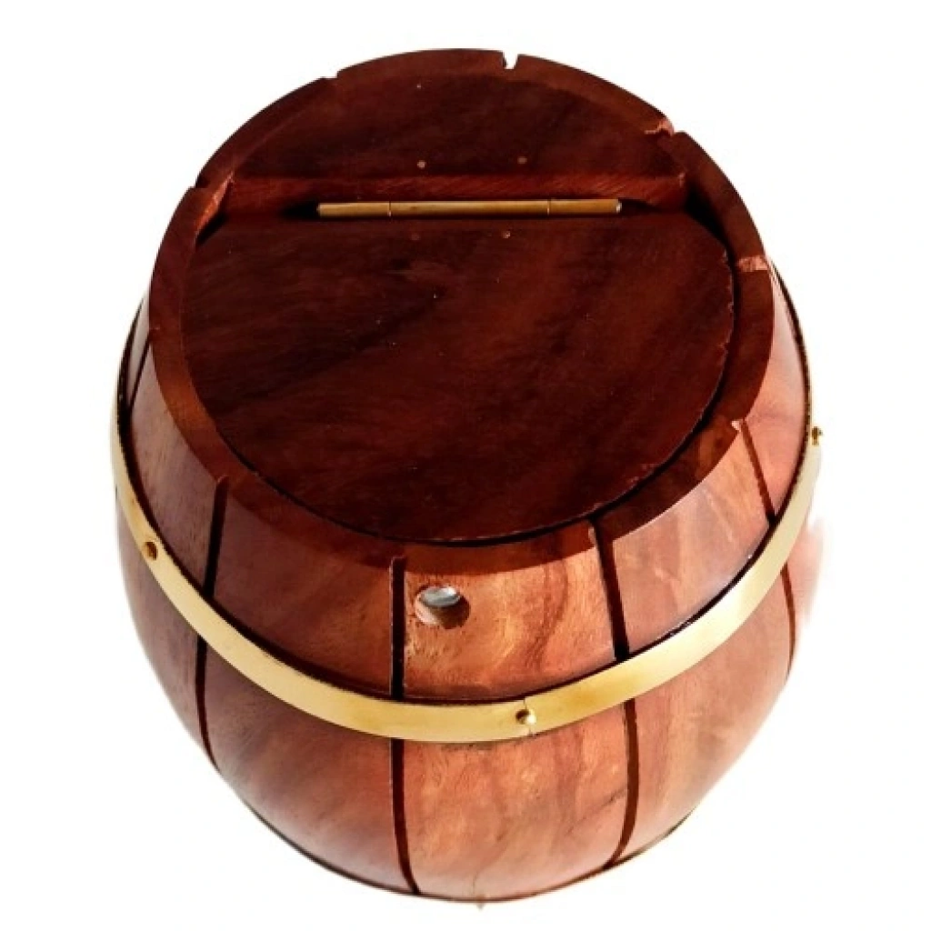 Ürünümüz Maun ağacından üretilmektedir. Ürünün sarı kısmında uzun süre rengini koruması için pirinç malzeme kullanılmıştır. Kumbaramız 7 cm eninde, 13 cm boyundadır.
