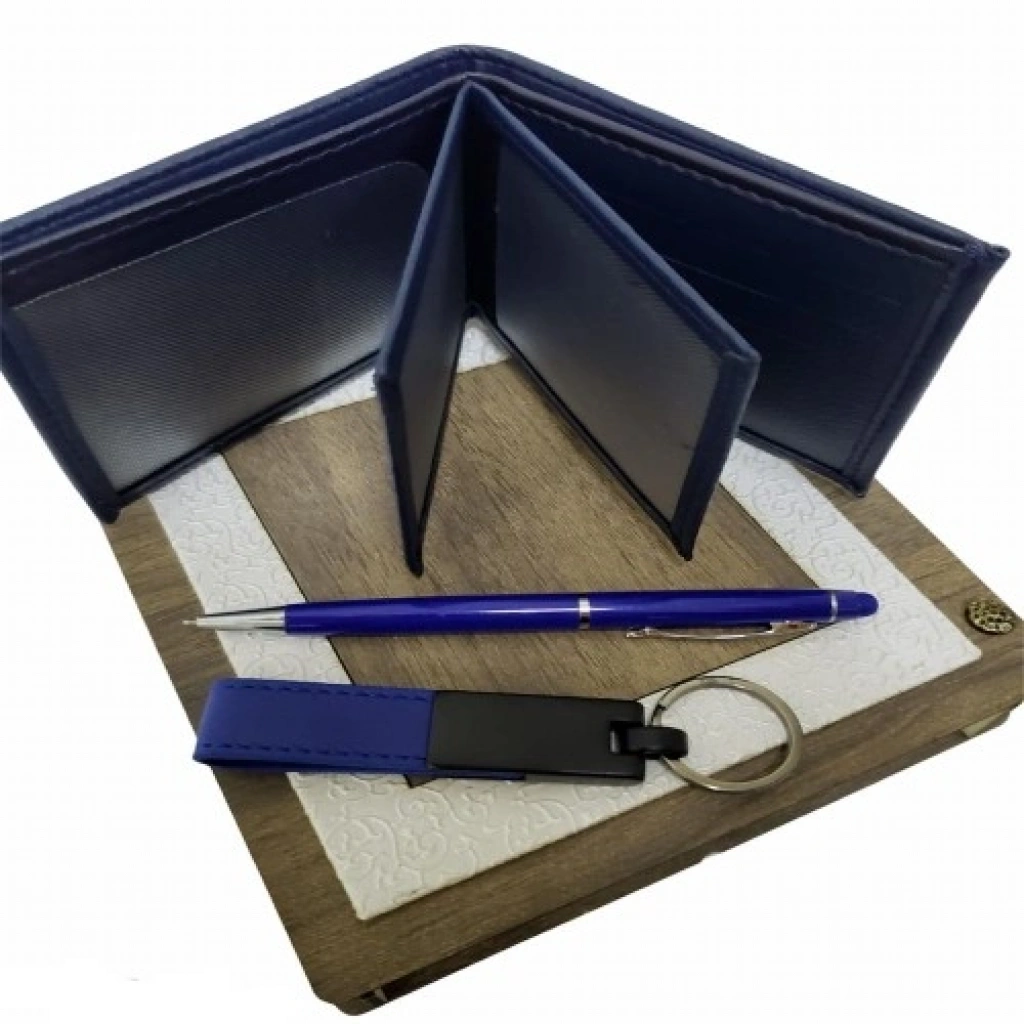Kutu: Ahşap ve deri malzemeden üretilmiştir. Cüzdan: Suni deridir. 6 kartlık 2 özel resimlik 1 bozuk para bölmesi 2 kağıt para bölmesi 2 gizli göz Anahtarlık: Kaliteli deri ve metal malzemeden üretilmiştir. Kalem: Mavi touchpen özelliklidir. Kutu içinde Z kesim süs kağıtları bulunur ve ürünlerin şık görünmesini sağlar. Ürün Ölçüleri Ahşap Deri Kutu: 18 cm x 17 cm x 4 cm Suni Deri Cüzdan: 9 cm x 11 cm Deri Anahtarlık: 11 cm x 2 cm Kalem: 14 cm x 1.5 cm