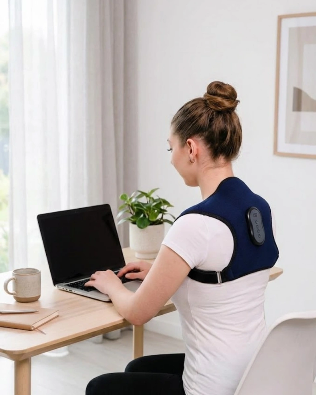 Medikal destekli akıllı sırt duruş düzeltici masaj kemeri, omurganın doğal eğimini desteklemek üzere ortopedik prensiplere göre tasarlanmıştır. Omurgayı 15 ila 25 derece aralığında doğal pozisyonuna yönlendiren yapısı sayesinde uzun süre masa başında çalışanlar, araç kullananlar ve gün içinde postür bozukluğu yaşayanlar için etkili bir destek sunar. Akıllı sensör sistemi, yuvarlak sırt duruşunu otomatik olarak algılar ve titreşimli uyarı ile duruşunuzu düzeltmeniz için hatırlatma yapar.Masaj, ısı ve titreşim fonksiyonlarını bir araya getiren çok yönlü yapısı sayesinde sadece duruş desteği değil aynı zamanda rahatlatıcı bir terapi deneyimi sunar. 3 farklı masaj seviyesi ve 3 kademeli ısı ayarı ile kişisel konfora göre kullanım imkânı sağlar. Isı terapisi kasların gevşemesine yardımcı olurken titreşimli masaj gerginliği azaltmayı destekler.X şeklindeki ergonomik taşıyıcı yapı, baskıyı omuzlar ve bel bölgesine dengeli şekilde dağıtır. Hafif ve nefes alabilen kumaşı sayesinde uzun süreli kullanımda bile konfor sağlar. Günlük yaşamda duruş bilincini artırmak ve sırt sağlığını desteklemek isteyenler için ideal bir çözümdür.