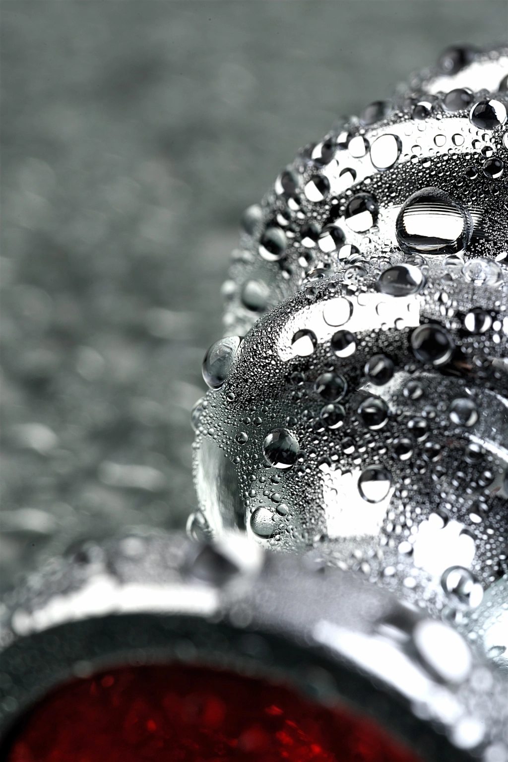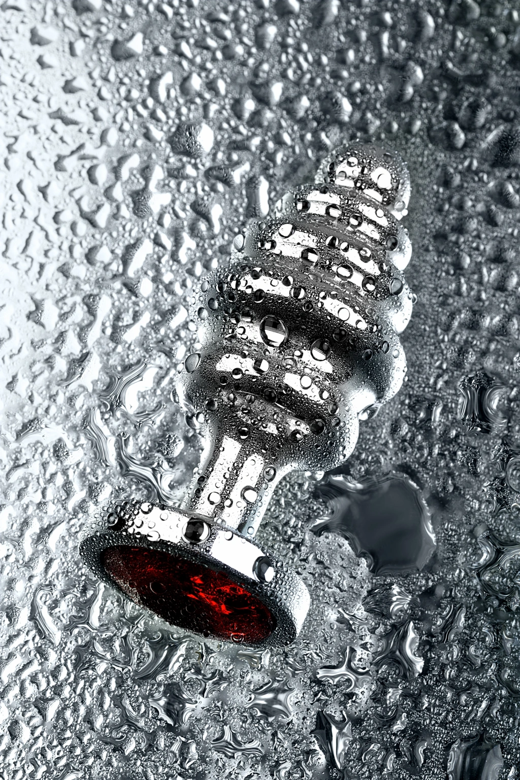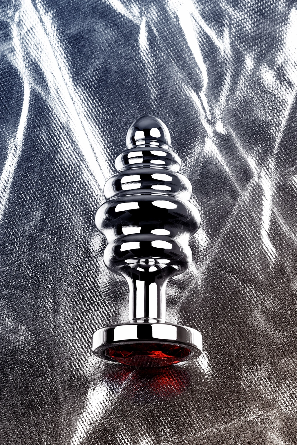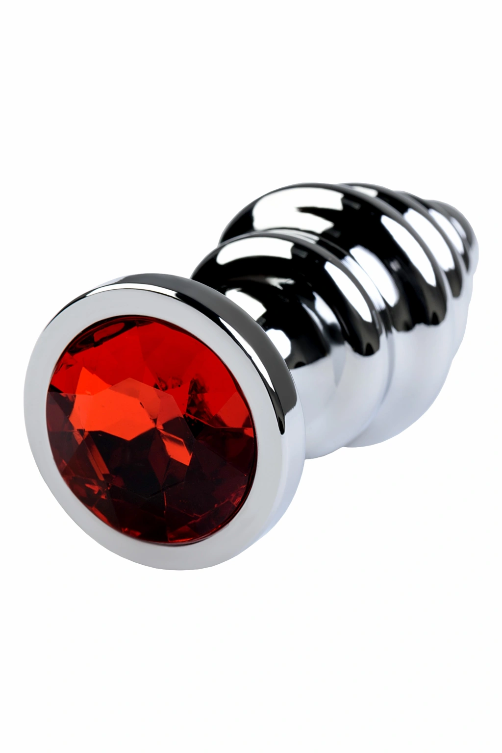 Yakut renginde bir yapay elmas ile bir Noel ağacı oyuncağı şeklinde orta büyüklükte gümüş bir plug. Kabartmalı yüzey, küçük bir burun ve kademeli olarak değişen çap sayesinde duyulara lezzet katar ve kolayca takılır ve çıkarılır.