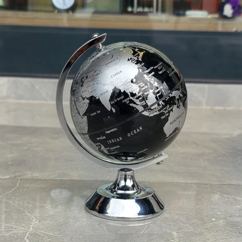 Çalışma alanınıza derinlik ve zarafet katacak bir parça ile tanışın! Metal Ayaklı Siyah Dünya Küresi, klasik harita tasarımını modern bir renk paletiyle harmanlayarak mekanınıza prestij kazandırır. 16 cm yüksekliğindeki bu şık küre, yüksek kaliteli parlak metal ayağı ve birinci sınıf dayanıklı plastik gövdesiyle kaliteyi elinizde hissettirir. Siyah zemin üzerine gümüş tonlarda işlenmiş net ve detaylı harita baskısı, hem keşif ruhunuzu canlı tutar hem de dekorasyonunuzda odak noktası olur. 360 derece dönebilen standlı yapısı sayesinde dilediğiniz noktayı kolayca inceleyebilirsiniz. Minimalist, endüstriyel veya klasik; her türlü iç mekan stiline mükemmel uyum sağlayan bu dünya küresi, ofis masaları, kütüphane rafları ve modern salonlar için ideal bir aksesuardır. Hem iş arkadaşlarınız için etkileyici bir ofis hediyesi hem de kendiniz için şık bir dekoratif çözüm arıyorsanız, bu siyah küre asil duruşuyla en doğru tercih olacaktır. Ürün Teknik Özellikleri ÖzellikAçıklama Yükseklik16 cm Ayak MalzemesiYüksek Kaliteli Parlak Metal (Krom Kaplama) Küre MalzemesiDayanıklı Birinci Sınıf Plastik Renk TemasıSiyah Üzeri Gümüş Detaylı Modern Stil TasarımÖzel Detaylı, Standlı ve 360 Derece Dönebilir Kullanım AlanıOfis Masası, Ev Dekorasyonu, Kütüphane Aksesuarı Baskı KalitesiYüksek Çözünürlüklü, Net ve Kaliteli Detaylar Paket İçeriği1 Adet Metal Ayaklı Siyah Dünya Küresi