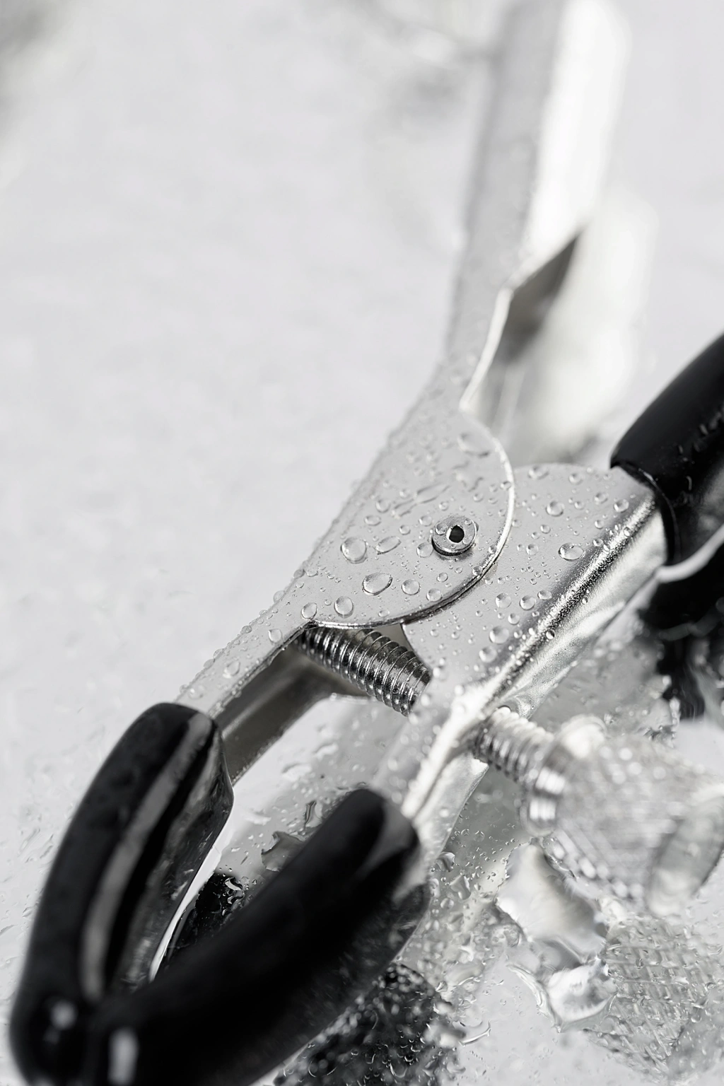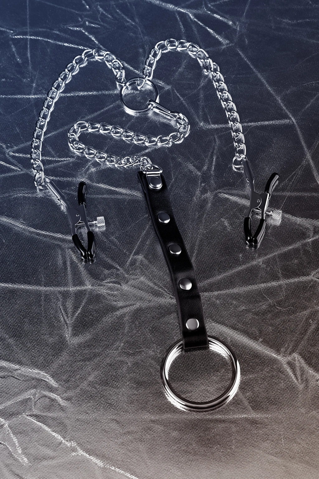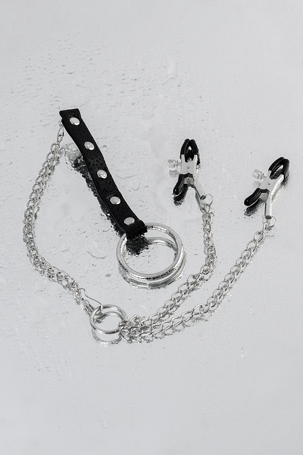Meme uçlarını etkilemek için kelepçelerin erkek versiyonu. Sıkıştırma kuvveti cıvatalarla düzenlenir ve samimi oyun sırasında güçlendirilebilir veya zayıflatılabilir. Özgürlüğün ek bir kısıtlaması penise metal bir halka sağlar. Klipslerin uzunluğu 5 cm, halkanın iç çapı 4 cm'dir.