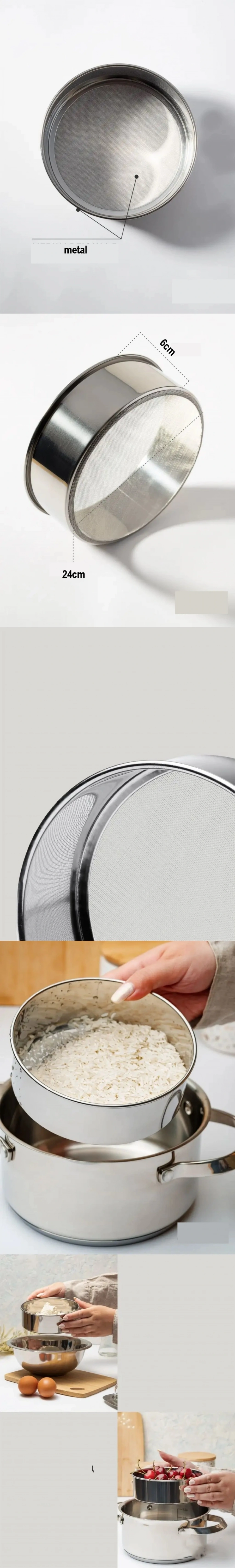 Çerçevesi ve süzgeci %100 çelikten imal edilmiştir. Un ve benzeri malzemeleri elemek için kullanılabilir. Ayrıca tencerelerde yemek yaparken süzgeç amaçlı da kullanılabilir