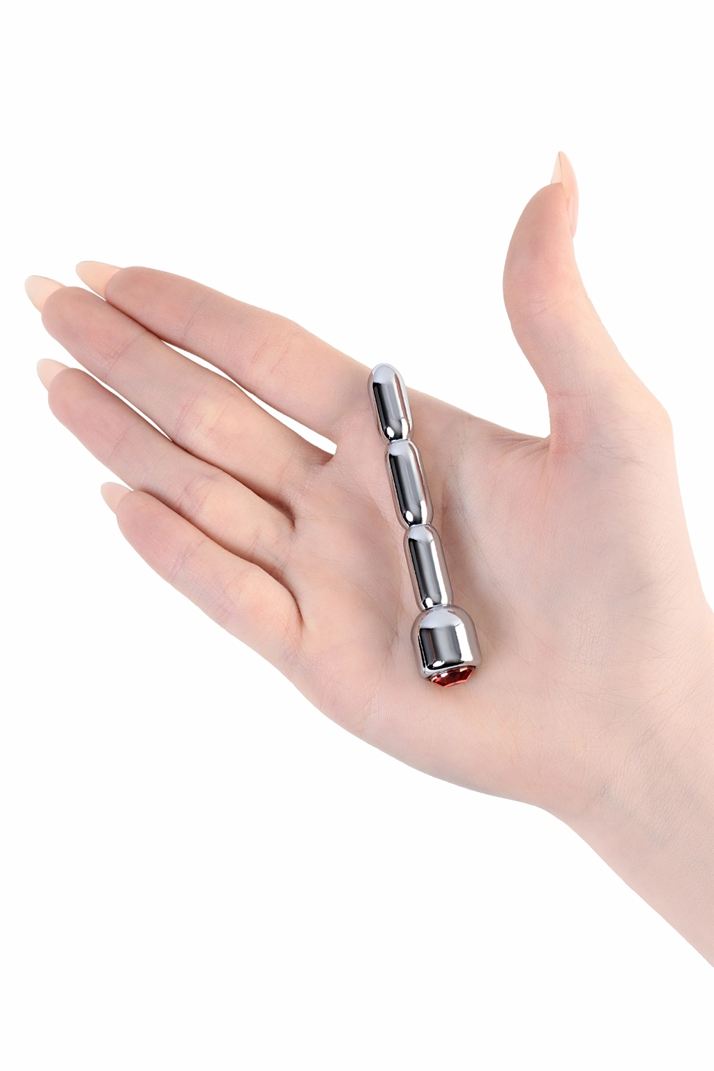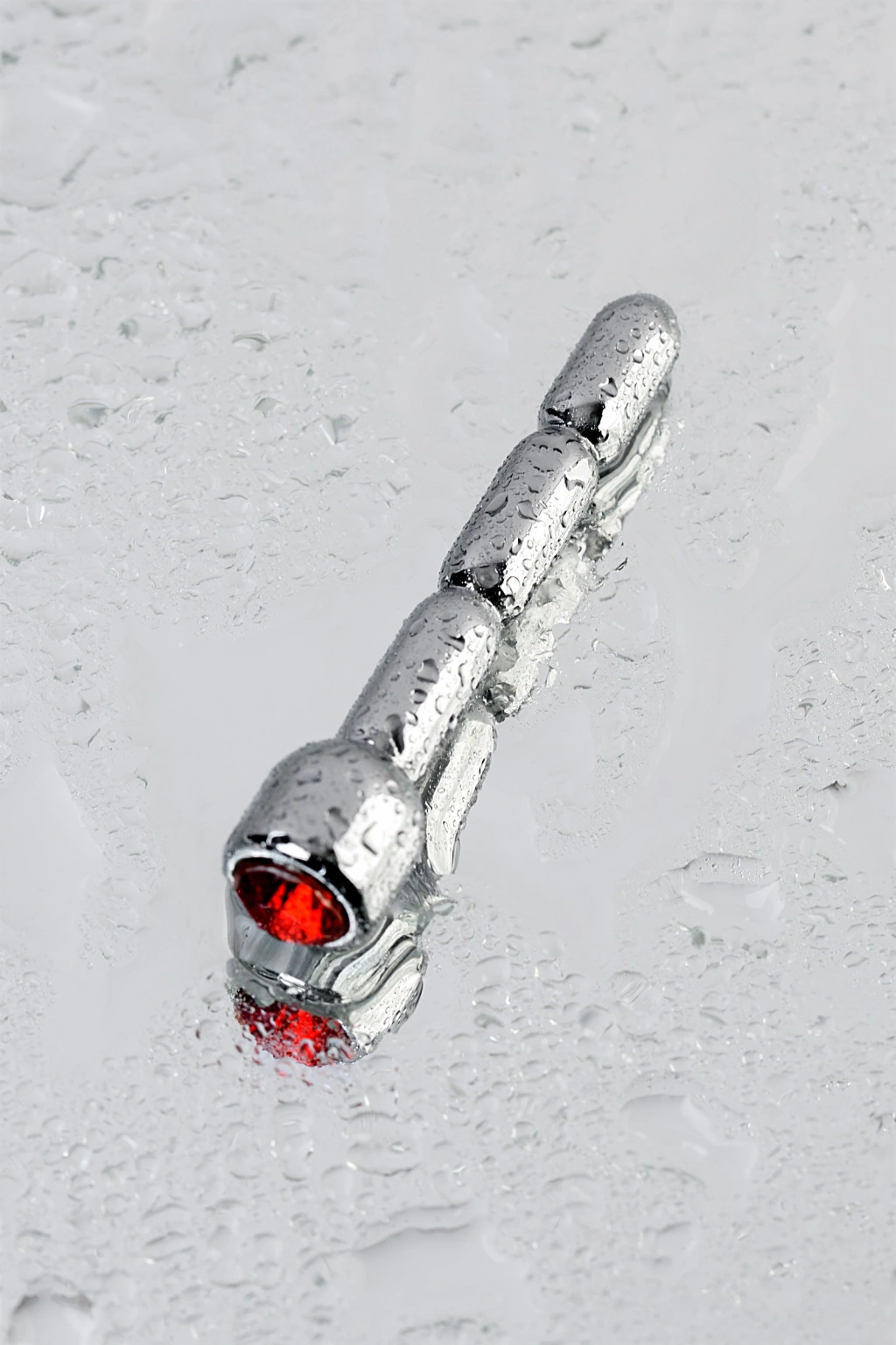 Orta boy yakut renkli rhinestones ile üretral fiş. Hem üretranın uyarılması hem de penisin dekorasyonu için uygundur.