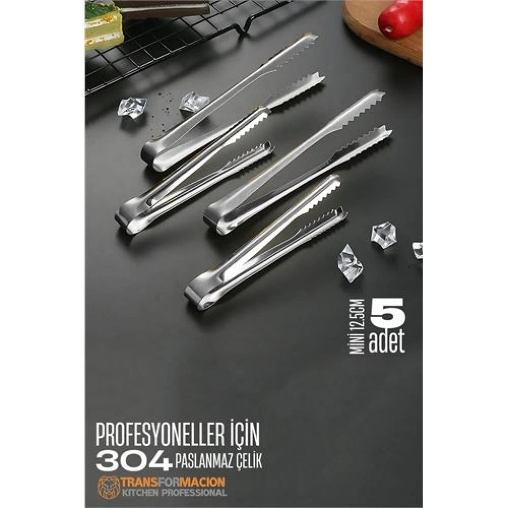 Vip Marketim Kitchen Professional - 304 Paslanmaz Çelik Buz Maşası (5 Adet, 12.5 cm)