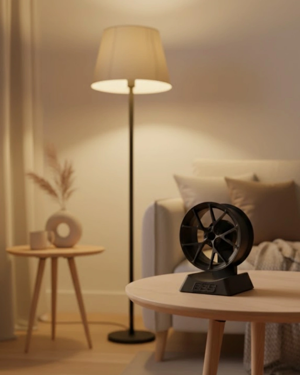 Bu jant dekor ürünü, spor otomobil ruhunu dekorasyona taşımak isteyenler için tasarlanmıştır. Masa üstünde sergilendiğinde bulunduğu ortama modern ve dinamik bir hava katar. Kompakt yapısı sayesinde fazla yer kaplamaz ve farklı alanlarda rahatlıkla kullanılabilir. Ofis masası, kitaplık, raf veya sehpa üzerinde dekoratif amaçlı kullanıma uygundur. Otomobil meraklıları için özgün ve şık bir tamamlayıcıdır.