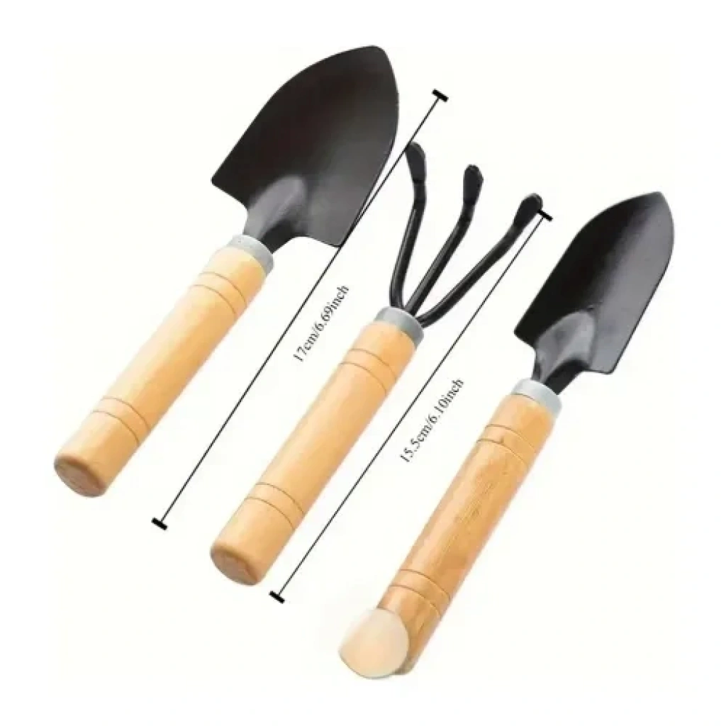 3'lü Fonksiyonel Set: Kazma, kürek ve tırmıktan oluşan bu set; toprak havalandırma, fide dikme, tohum ekme ve düzenleme işlemlerinin tamamını tek pakette sunar.Ergonomik Ahşap Saplar: Doğal ahşap tasarımı sayesinde elinize tam oturur, terletme yapmaz ve uzun süreli kullanımlarda konforlu bir tutuş sağlar.Dayanıklı Metal Başlıklar: Sertleştirilmiş metal uçlar, toprağı kolayca işlemenizi sağlar ve bükülmelere karşı dirençlidir.Sukulent ve Saksı Dostu: Dar saksılarda ve küçük bitkilerde çalışmak için özel olarak boyutlandırılmıştır; bitki köklerine ve gövdelerine zarar vermez.Portatif Tasarım: Hafif ve kompakt yapısı ile çekmecenizde yer kaplamaz, kamp ve outdoor gezilerinde kolayca taşınabilir.Kullanım AlanlarıEv ve Balkon Bahçeciliği: Saksı çiçeklerinin toprak değişimi ve düzenli bakımı.Hobi Alanları: Sukulent, kaktüs ve bonsai ağaçları için hassas toprak işleme.Kamp ve Doğa: Çadır çevresi düzenleme veya ateş çukuru hazırlığı gibi küçük outdoor görevleri.Eğitim: Çocuklara doğa sevgisini aşılamak için güvenli ve eğlenceli bir başlangıç seti.Teknik BilgilerMateryal: Yüksek Kaliteli Metal + Doğal Ahşap SapParça Sayısı: 3 AdetTip: Mini / Hobi BoyPaket İçeriği1 Adet Mini El Kazması1 Adet Mini El Küreği1 Adet Mini El Tırmığı
