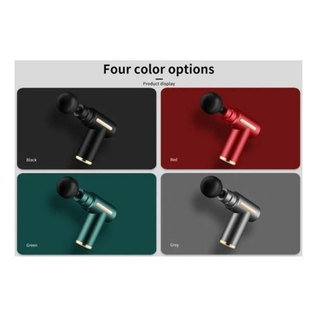 4 farklı masaj başlığı: Her bölgeye özel masaj desteği sağlar. Titreşim teknolojisi: Kas ağrılarını azaltır, dolaşımı artırır ve gerginliği giderir. Şarj edilebilir tasarım: Kablosuz kullanım sunar, uzun süreli performans sağlar. Kompakt ve hafif: Kolay taşınabilir, her ortamda kullanılabilir. Sessiz çalışma: Konforlu bir masaj deneyimi sunar. Renk seçenekleri: Siyah, kırmızı, yeşil, gri Avantajları: Kas ağrılarını hafifletir ve vücudu rahatlatır. Spor sonrası toparlanmayı destekler. Günlük yaşamda gerginliği azaltır. Ergonomik tasarımı sayesinde kolay kavrama ve kullanım sağlar. Kullanım Alanları: Spor sonrası kas gevşetme Günlük yaşamda rahatlatıcı masaj Ofiste uzun süreli oturma sonrası oluşan gerginlik Seyahat sırasında taşınabilir masaj çözümü Mini masaj tabancası ile kaslarınızı rahatlatın, kendinizi şımartın ve konforu her an yanınızda hissedin!