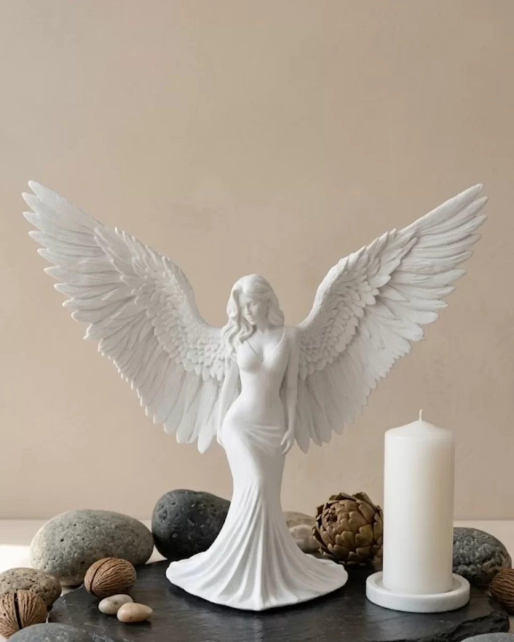 Kanatlı melek figürlü 3D dekoratif heykel biblo, modern ve estetik tasarımı ile yaşam alanlarında dikkat çeken dekoratif ürünlerden biridir. Kanatlarını açmış melek figürü zarafet, huzur ve koruma sembolü olarak bilinir ve dekorasyon dünyasında oldukça popüler figürlerden biridir.3D baskı teknolojisi ile üretilen bu dekoratif heykel, detaylı kanat yapısı ve zarif figür tasarımı sayesinde oldukça estetik bir görünüm sunar. Figürün geniş kanatları ve akıcı elbise formu ürüne sanatsal bir karakter kazandırır. Bu sayede ürün yalnızca bir biblo değil aynı zamanda dekoratif bir sanat objesi olarak da kullanılabilir.Dekoratif melek figürü özellikle salon dekorasyonunda oldukça şık bir aksesuar olarak kullanılabilir. Konsol üzerinde, sehpa üzerinde veya televizyon ünitesi üzerinde sergilendiğinde bulunduğu ortama zarif bir atmosfer kazandırır. Aynı zamanda kitaplık raflarında veya çalışma odalarında da estetik bir dekoratif obje olarak kullanılabilir.Beyaz renkli sade tasarımı sayesinde modern, minimalist ve klasik dekorasyon stilleri ile uyum sağlayabilecek bir görünüme sahiptir. Bu sayede farklı dekorasyon tarzlarına sahip evlerde kolaylıkla kullanılabilir.Dekoratif melek figürlü heykel aynı zamanda anlamlı bir hediye alternatifi olarak da tercih edilebilir. Ev hediyesi, yeni ev hediyesi, doğum günü hediyesi veya özel gün hediyesi olarak verilebilecek estetik bir dekoratif üründür.Modern tasarımı, zarif figürü ve detaylı kanat yapısı sayesinde kanatlı melek figürlü 3D dekoratif heykel biblo yaşam alanlarında huzurlu ve estetik bir atmosfer oluşturan şık bir dekoratif aksesuardır.