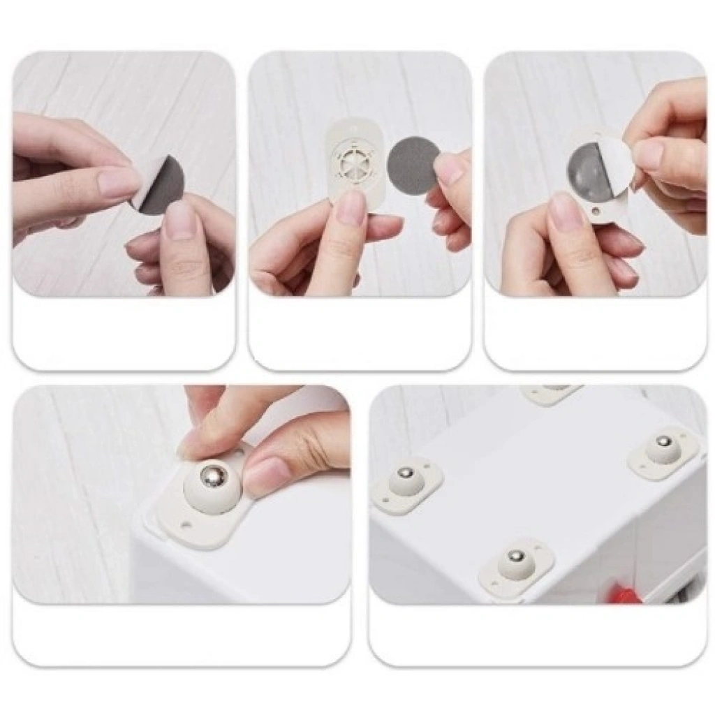 Küçük döner tekerlekler, makyaj kutusu, mutfak, masaüstü ve alt raf depolama için çok uygun, uygulandığında tamamen sessiz,herhangi bir açıya kayabilir. Tekerleklerinuygulama alanı temiz olmalıdır. Yapışkan teker istenilen bölgeye yapıştırıl ve24 saat beklenir, sonra kullanıma hazır istediğiniz yere hareketettirebilirsiniz. ÜrünEbatları4,5 x 2,8x 1,5 cm Paketİçeriği4 Adet Mobilya EşyaKaydırma Taşıma Aparatı