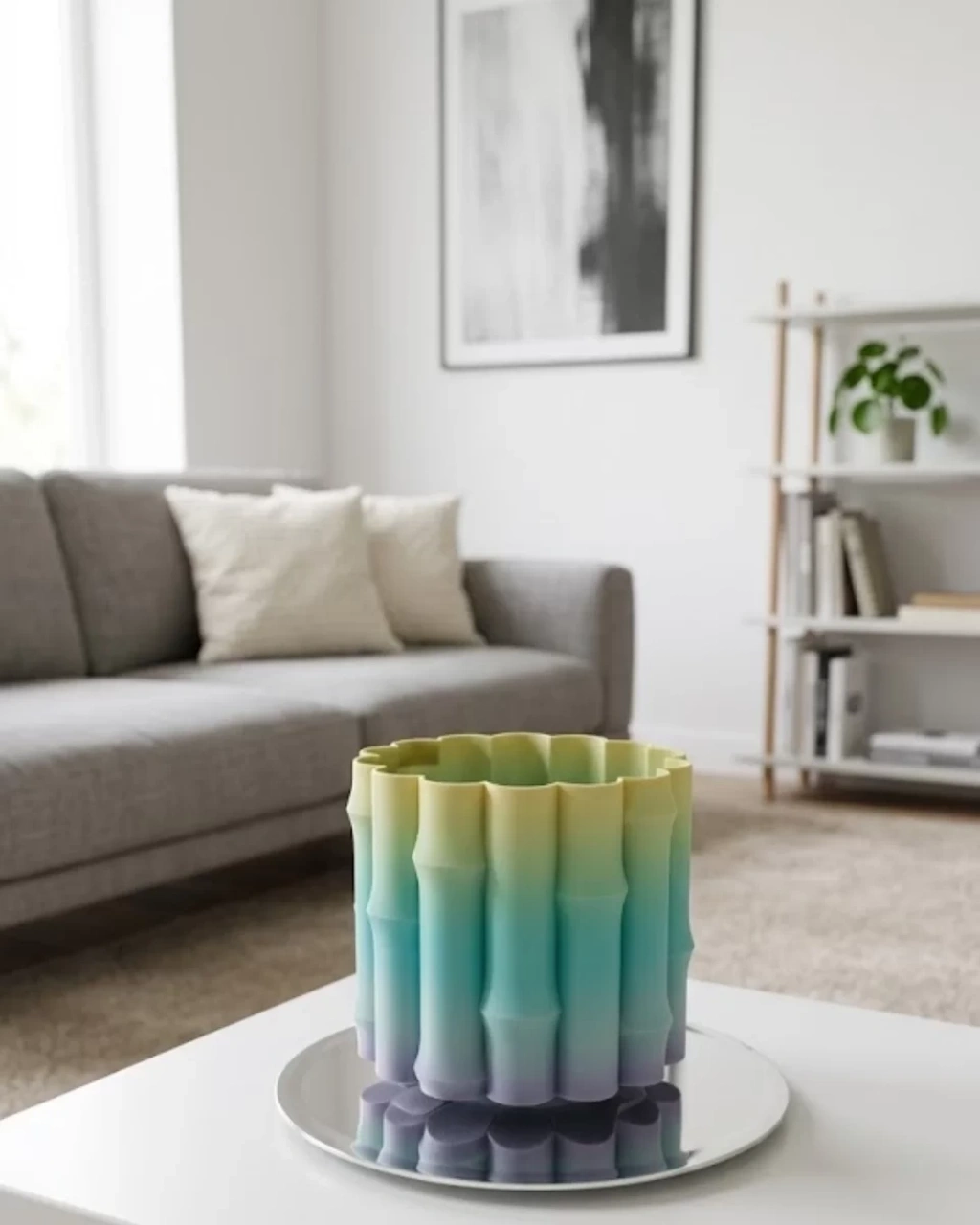 Modern tasarımı ve göz alıcı yeşil ton geçişleri ile dikkat çeken bu dekoratif vazo, yaşam alanlarınıza ferah ve estetik bir dokunuş katmak için özel olarak tasarlanmıştır. Minimalist çizgileri sayesinde hem modern hem de sade dekorasyon tarzlarına mükemmel uyum sağlar. Bulunduğu ortamda doğal ve huzurlu bir atmosfer oluşturarak dekorasyonun tamamlayıcı parçası haline gelir.Ürünün yüzeyinde yer alan özel form detayları, klasik vazolardan ayrılmasını sağlar. Dalgalı ve geometrik hatlar, ışıkla birlikte farklı yansımalar oluşturarak ürüne dinamik bir görünüm kazandırır. Yeşil tonların açık ve pastel geçişleri, ortama yumuşak ve modern bir hava katar. Bu özellik, ürünü yalnızca bir vazo değil aynı zamanda dekoratif bir sanat objesi haline getirir.Salon, yatak odası, ofis veya çalışma alanlarında rahatlıkla kullanılabilir. Masa üstü, sehpa, raf veya TV ünitesi üzerinde konumlandırıldığında bulunduğu alanı zenginleştirir. İçine yapay çiçekler, kuru çiçekler veya dekoratif dallar yerleştirerek farklı konseptler oluşturabilirsiniz. Aynı zamanda tek başına kullanıldığında da oldukça şık bir görünüm sunar.Hafif ve dayanıklı yapısı sayesinde uzun süreli kullanım sağlar. Kolay taşınabilir olması, farklı alanlarda kullanım imkanı sunar. Modern tasarımı ile hem günlük kullanım hem de hediye alternatifi olarak tercih edilebilir.