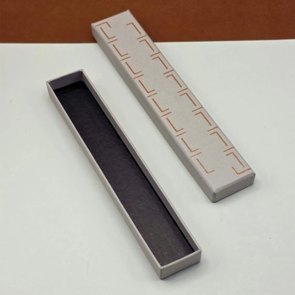 Kaliteli mukavva malzemeden üretilmiştir. Üzerindeki özel desenli tasarım, kutuya şık bir görünüm kazandırır. Kutu üzerine baskı uygulanabilir. Toplu siparişlerde baskı hizmeti sunulmaktadır. Tesbih hediye etmek için ideal bir kutu modelidir. Ürün Ölçüsü 21 cm x 4 cm