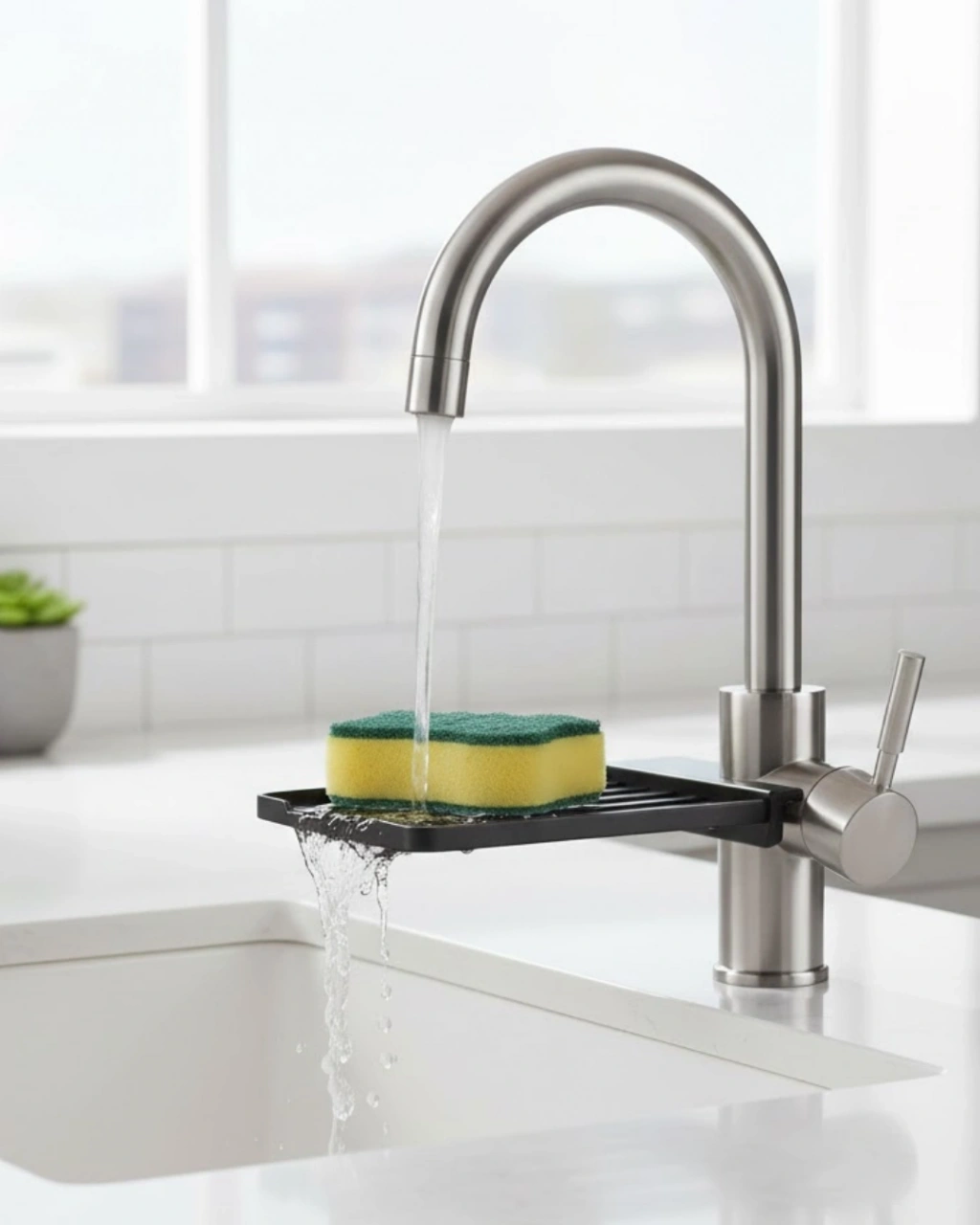 musluk organizeri, mutfakta hem hijyen hem de kullanım kolaylığı arayanlar için tasarlanmış fonksiyonel bir çözümdür. Süngerlerin sürekli ıslak kalması, bakteri oluşumu ve kötü koku gibi sorunlara yol açabilir. Bu ürün, süngerinizi musluğun gövdesine entegre platform üzerinde konumlandırarak bu sorunları ortadan kaldırmayı amaçlar.Organizerin en önemli özelliği, alt kısmında bulunan drenaj kanallarıdır. Sünger yıkandıktan sonra üzerinde kalan su, bu kanallar sayesinde doğrudan lavaboya akar. Böylece sünger daha hızlı kurur ve hijyenik kalır. Tezgâhla temas etmediği için hem mutfak yüzeyiniz temiz kalır hem de süngeriniz daha sağlıklı bir şekilde muhafaza edilir.Musluğa monte ve birleşik yapısı sayesinde ürün sabit durur, sallanmaz ve kullanım sırasında güven verir. Ekstra montaj, yapıştırıcı veya askı gerektirmez. Mutfakta sade ve düzenli bir görünüm elde etmek isteyenler için ideal bir çözümdür. Özellikle minimal mutfak tasarımlarında alan kazanımı sağlar.Şık ve modern tasarımıyla mutfak dekorasyonunu tamamlayan bir aksesuardır. Günlük yoğun kullanıma uygun dayanıklı yapısı sayesinde uzun ömürlüdür. Sünger değiştirme ve temizleme işlemleri son derece pratiktir.Bu musluk organizeri, mutfakta küçük ama etkili bir düzen sağlayarak günlük bulaşık ve temizlik işlerinizi daha konforlu hale getirir. Hijyen, düzen ve kullanım kolaylığını bir arada sunan pratik bir mutfak yardımcısıdır.