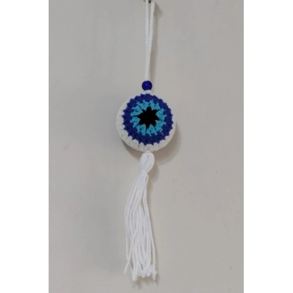 Nazar Boncuğu Desenli Püsküllü Beyaz Araba SüsüNazar, koruyucu anlamı ve güçlü sembolizmiyle tasarlanan bu püsküllü araba süsü, beyaz orlon ipten el örgüsü olarak üretilmiştir. Nazar boncuğu desenli motifi sayesinde hem dekoratif hem de anlamlı bir aksesuar olarak öne çıkar. Beyaz rengin saflığı ve zarafeti, ürünü ferah ve şık bir görünümle tamamlar.Ürünümüz tamamen el örgüsü olup kaliteli orlon ip kullanılarak hazırlanmıştır. Dayanıklı ve hafif yapısı sayesinde uzun süre formunu korur. Püskül detayları tasarıma hareket katarak el emeğinin estetik duruşunu ön plana çıkarır.Püsküllü araba süsümüzün yuvarlak ana bölümü 7 santimetre çapındadır. Toplam uzunluğu 23 santimetredir. Dikiz aynasına kolayca asılabilir ve sürüş esnasında rahatsızlık vermeden araç içine zarif bir dokunuş katar. Araç içi dekorasyonunu tamamlamak, nazar temalı anlamlı bir aksesuar kullanmak ya da sevdiklerinize küçük ve özel bir hediyelik sunmak için ideal bir tercihtir.