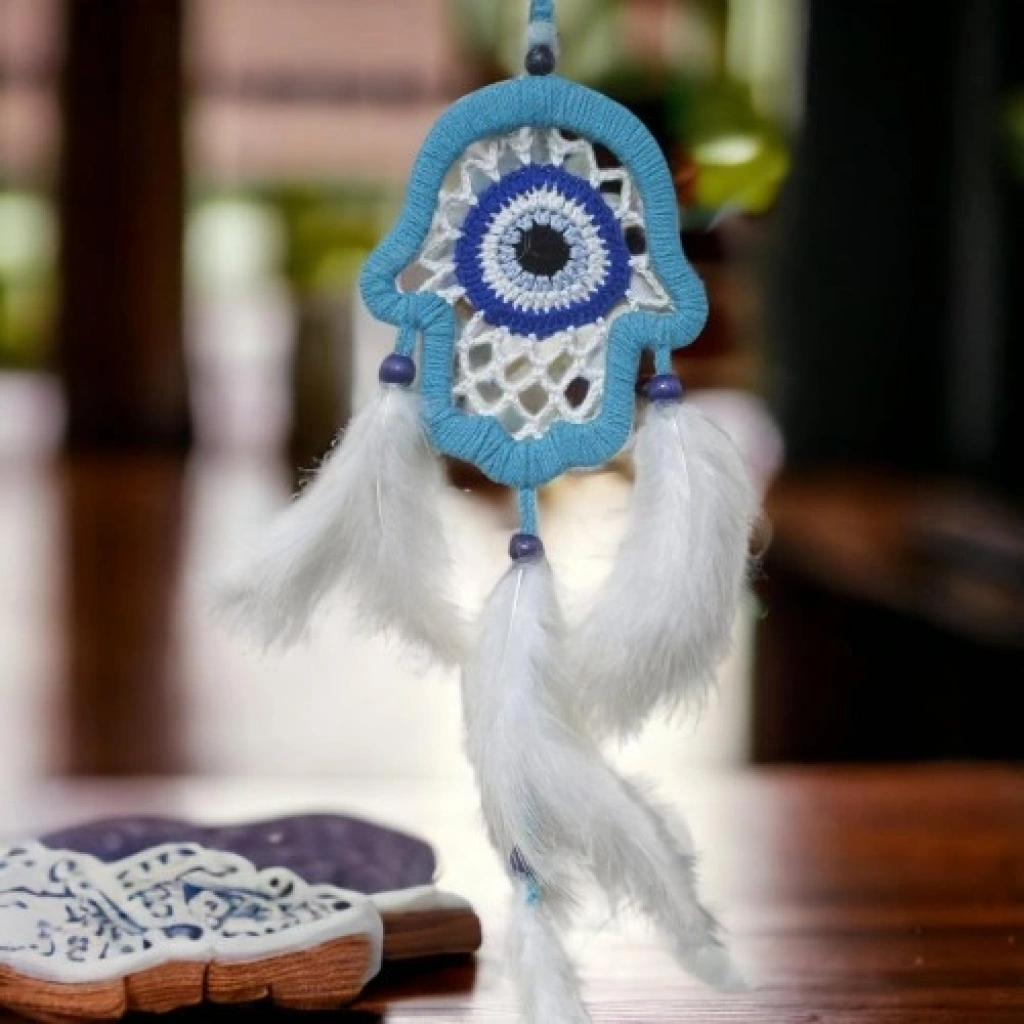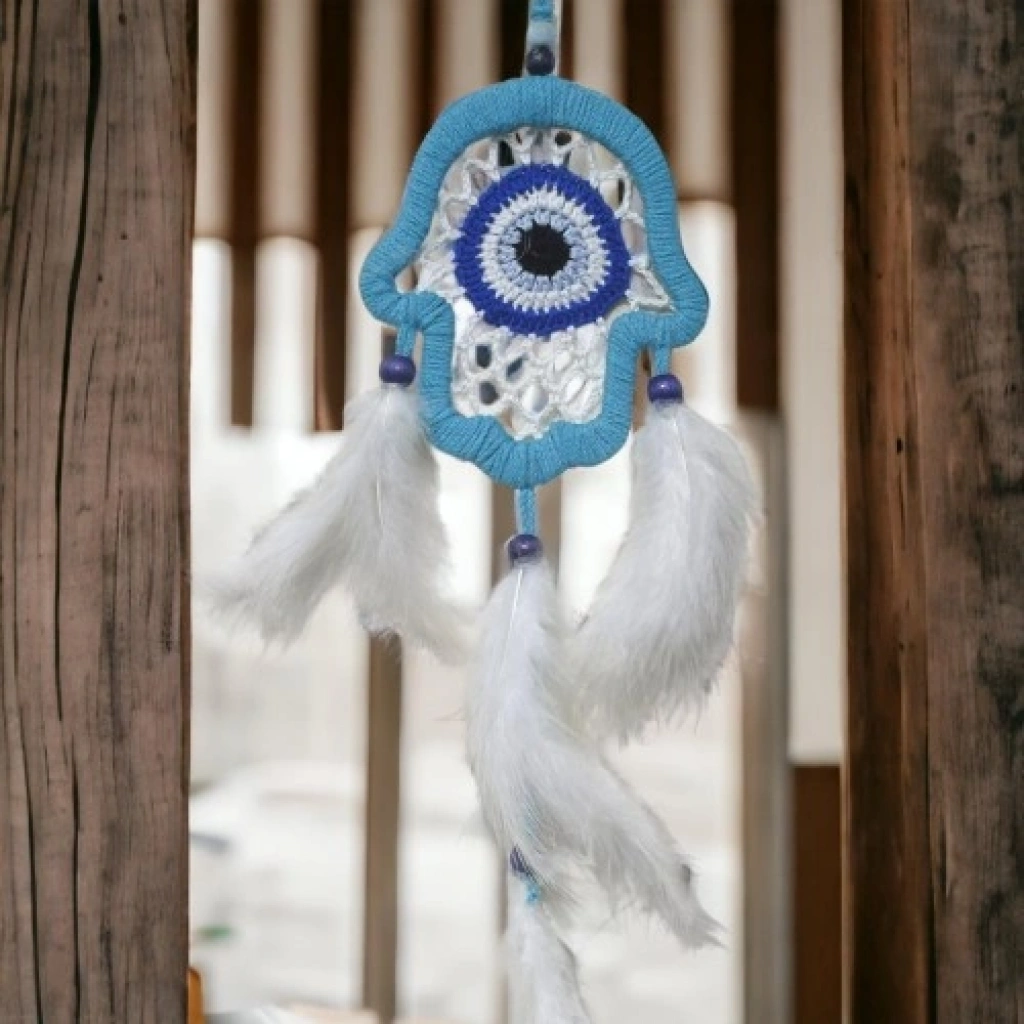 Nazar Boncuğu Motifli Fatma Ana Eli Duvar Süsü El İşçiliği Duvar DekoruÜrünümüz tamamen el işçiliği ile üretilmektedir.Ürün Ebatları:Genişliği: 12 cmUzunluğu: 13 cmİp Dahil Uzunluğu: 40 cm