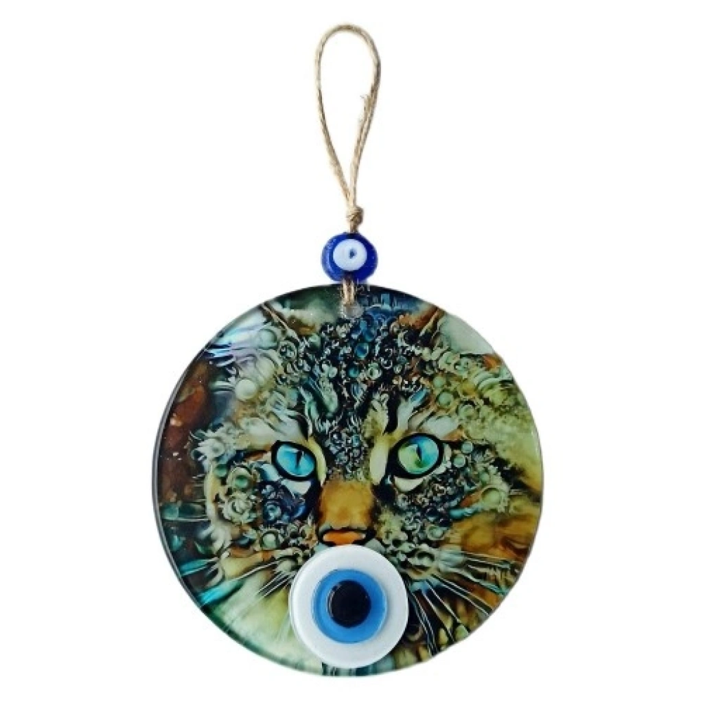 Kedi duvar süsümüz füzyon cam malzeme kullanılarak üretilmektedir. Ürünümüz 15 santimetre çapındadır. Ürünümüz ip dahil yaklaşık 30 santimetre boyundadır.
