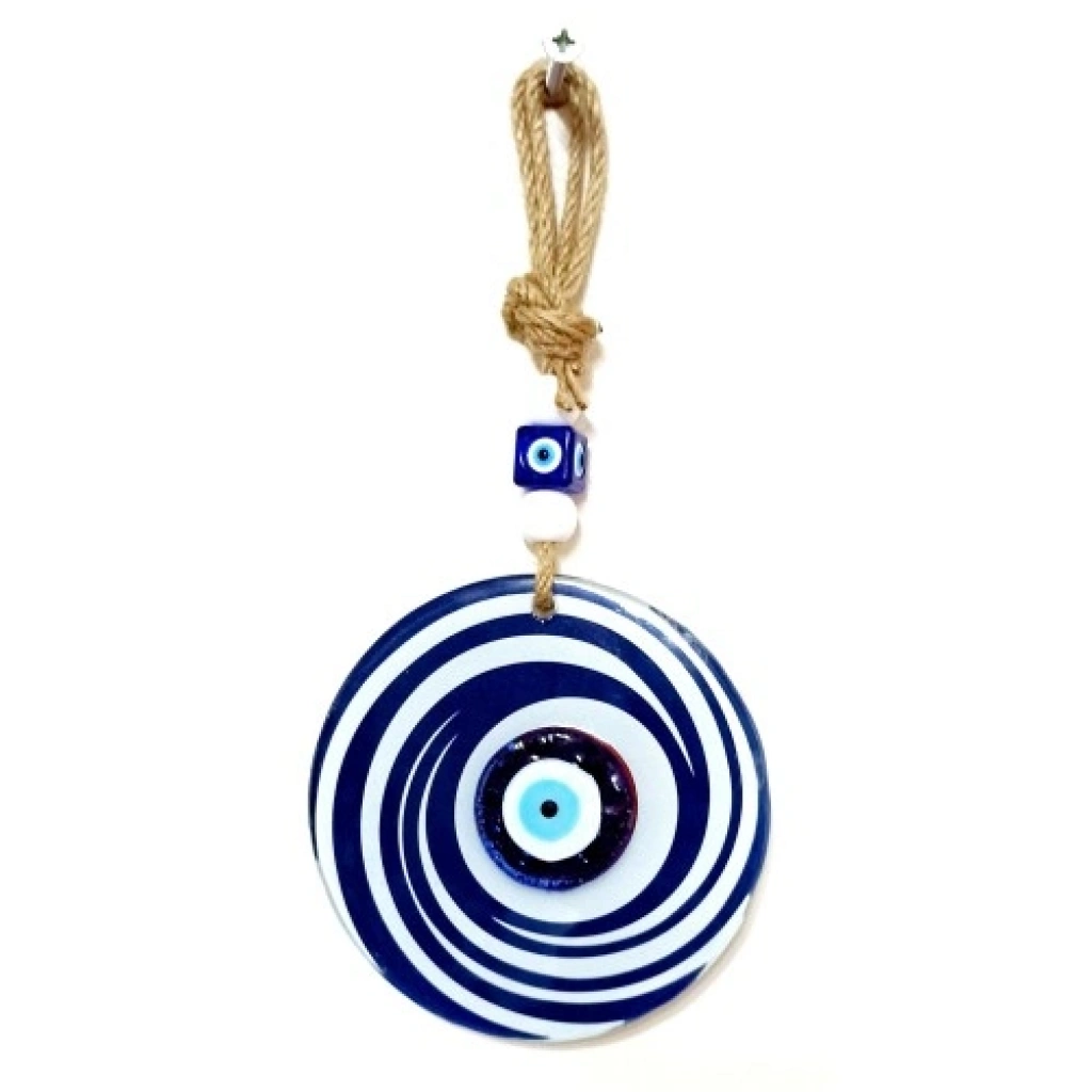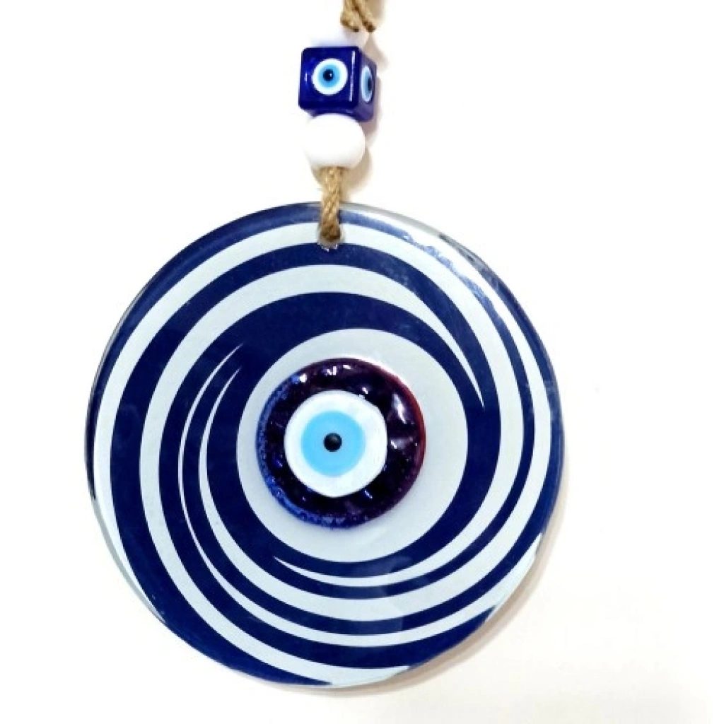 Nazar Boncuklu Lacivert Ve Beyaz Renkli Füzyon Cam Duvar SüsüNazar, koruyucu anlamı ve güçlü sembolizmiyle tasarlanan bu lacivert ve beyaz renkli füzyon cam duvar süsü, klasik renk uyumu ve zarif tasarımıyla dekorasyona şıklık katar. Lacivertin asaleti beyazın sadeliğiyle birleşerek hem modern hem de zamansız bir görünüm sunar.Ürünümüz füzyon cam tekniği kullanılarak özenle üretilmektedir. Camın parlak yüzeyi, renklerin canlılığını ön plana çıkarırken bulunduğu ortama ferah ve estetik bir atmosfer kazandırır. El işçiliğiyle hazırlanması sayesinde her ürün kendine özgü detaylara sahiptir ve benzersizdir.Nazar boncuklu lacivert ve beyaz renkli cam duvar süsümüz 12 santimetre çapındadır. İp dahil toplam uzunluğu 26 santimetredir. Hafif ve dengeli yapısı sayesinde duvara, kapıya, pencere önüne veya farklı dekoratif alanlara kolaylıkla asılabilir. Salon, antre, ofis ve iş yeri dekorasyonları için ideal olan bu füzyon cam duvar süsü; yeni ev hediyesi, iş yeri açılışı ve özel günler için estetik ve anlamlı bir hediyelik alternatifi sunar.