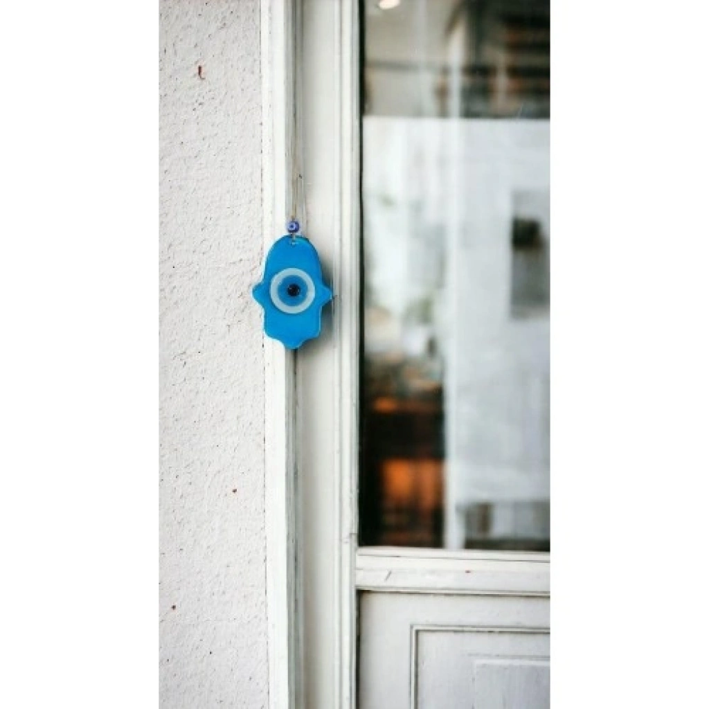 Nazar Boncuklu Turkuaz Mavisi Rengi Fatma Ana Bereket Eli Cam Duvar SüsüNazar, koruyucu anlamı ve güçlü sembolizmiyle öne çıkan bu Fatma Ana Bereket Eli cam duvar süsü, turkuaz mavisinin ferahlatıcı ve huzur veren tonlarıyla dekorasyonunuza anlamlı bir dokunuş katar. Fatma Ana eli; bolluk, bereket, şans ve nazardan korunma inancını simgelerken, turkuaz mavisi renk huzur, denge ve pozitif enerjiyi temsil eder.Ürünümüz cam malzemeden üretilmiş olup parlak yüzeyi ve zarif formu sayesinde dikkat çekici bir görünüme sahiptir. Üzerinde yer alan nazar boncuğu detayı, hem dekoratif estetiği güçlendirir hem de koruyucu sembol anlamını ön plana çıkarır. Modern ve geleneksel dekorasyon stilleriyle uyumlu bir tasarıma sahiptir.Fatma Ana Bereket Eli duvar süsümüz 11 santimetre eninde ve 15 santimetre boyundadır. İp dahil toplam uzunluğu 28 santimetredir. Hafif yapısı sayesinde duvara, kapıya, kapı arkasına veya farklı alanlara kolaylıkla asılabilir. Ev, ofis, iş yeri, antre ve mutfak dekorasyonları için ideal olan bu ürün; aynı zamanda hediyelik olarak da sıklıkla tercih edilmektedir. Yeni ev hediyesi, iş yeri açılışı, özel günler ve anlamlı anlar için şık ve manevi değeri yüksek bir hediye alternatifi sunar.
