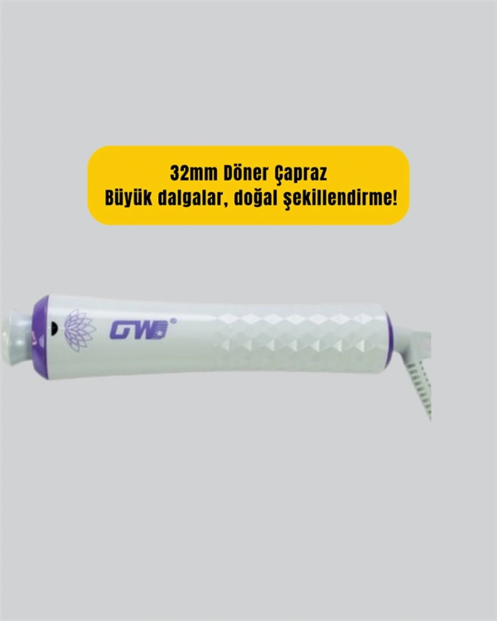 İster özel bir davete hazırlanın ister ofise geçmeden saçınıza hızlı bir dokunuş yapın… GW Taşınabilir Kıvırma Makinesi, zamanla yarışan kadınlar için en pratik çözümlerden biri. Cihazın hızlı ısınma sistemi, birkaç saniye içinde 140-210°C arası sıcaklığa ulaşarak dakikalar içinde şekillendirme işlemini tamamlamanızı sağlar.32mm’lik döner başlık sayesinde geniş ve doğal görünümlü bukleler elde edersiniz. Bu çap sayesinde saçlarınız daha hacimli ve sağlıklı görünür. Üstelik seramik plakaların özel formülü sayesinde saç tellerine eşit ısı yayılır, kırık ve kuruma oluşmaz.Negatif iyon salınımı, saçtaki nemin korunmasına yardımcı olur ve saçın elektriklenmesini önler. Şık tasarımı, ergonomik gövdesi ve kablosunun dönme özelliği ile ister evde ister seyahatte tam profesyonel sonuçlar elde edin. Artık şık saçlar için kuaföre gitmenize gerek yok!