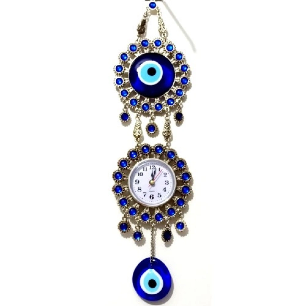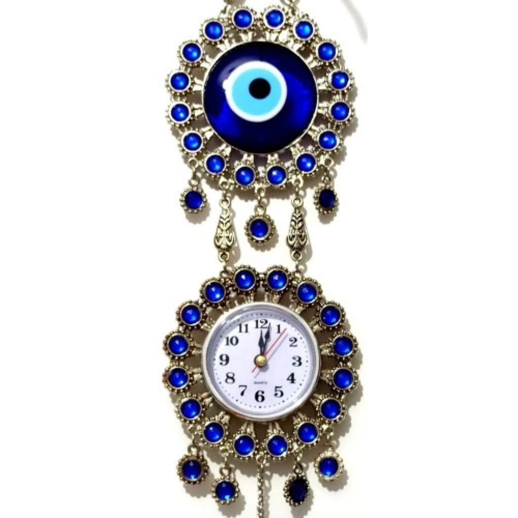 Malzeme: Nikel zamak kaplama Renk: Gümüş Genişlik: 12 cm Uzunluk: 43 cm Üst bölümde dekoratif nazar boncuğu Alt bölümde mini duvar saati Hem dekoratif hem işlevsel kullanım Nazar değmesini istemediğiniz sevdiklerinize hediye edebileceğiniz anlamlı bir ürün