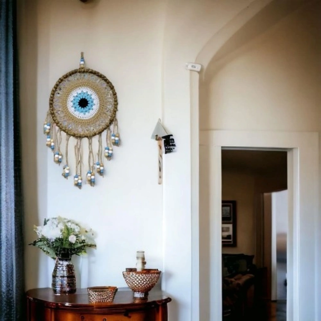 Örgülü Duvar Süsü Capucino Kahvesi Duvar Süsü BoncukluÖrgülü, sıcak ve doğal tonlarıyla öne çıkan bu capucino kahvesi boncuklu duvar süsü, tamamen el yapımı olarak hazırlanmış şık bir dekoratif üründür. Capucino kahvesi rengin huzur veren ve zamansız şıklığı, örgü detayları ve boncuk süslemeleriyle birleşerek yaşam alanlarınıza doğal bir zarafet kazandırır.Duvar süsümüz özenle örülmüş yapısıyla hem estetik hem de dayanıklı bir form sunar. Boncuk detayları tasarıma hareket katarak el emeğinin inceliğini ön plana çıkarır. Doğal ve soft renk tonu sayesinde bohem, rustik ve modern dekorasyon tarzlarıyla uyum sağlar.Yuvarlak ana gövdesi 23 santimetre çapındadır. İp dahil toplam uzunluğu 55 santimetre olan bu duvar süsü; salon, yatak odası, antre, ofis ve çocuk odası dekorasyonlarında rahatlıkla kullanılabilir. Hafif yapısı sayesinde duvara, kapıya veya farklı alanlara kolayca asılabilir. El yapımı olması sayesinde her biri kendine özgü olan bu örgülü duvar süsü; yeni ev hediyesi, özel günler ve sevdikleriniz için doğal ve şık bir hediyelik alternatifi sunar.