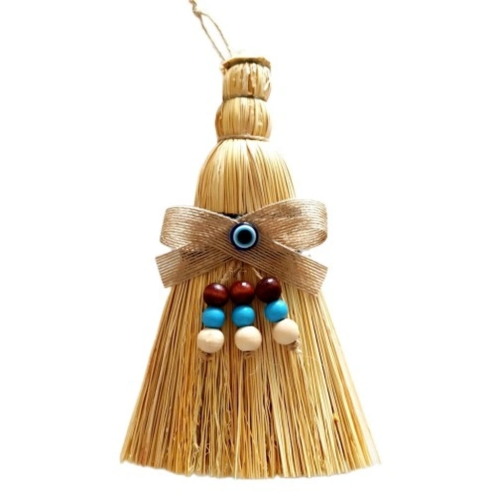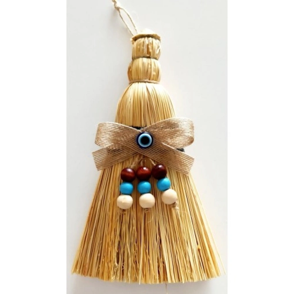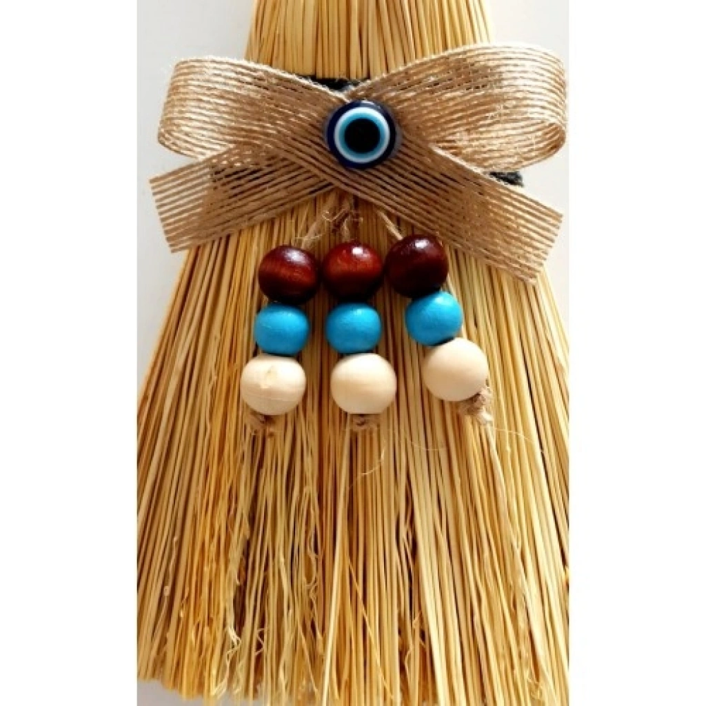 Otantik ürünümüz ahşap boncuklarla süslenmiştir. Birinci kalite malzeme ile elde üretilen süpürgeler seçilerek ürünümüz üretilmektedir. Dekoratif mini duvar süsü süpürgemiz 10 cm eninde, 24 cm boyundadır.
