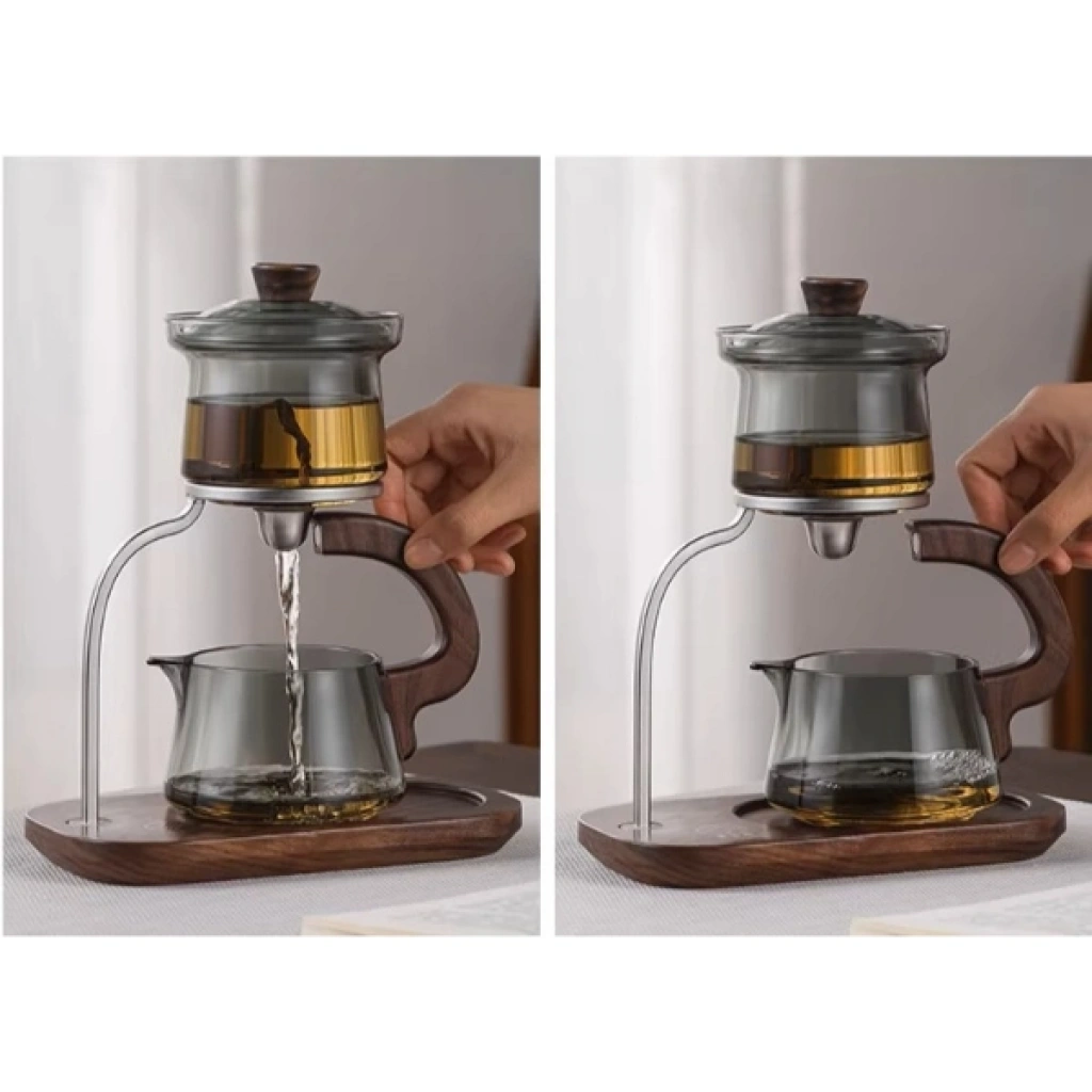 Zarif tasarımı ve yenilikçi yapısıyla öne çıkan Otomatik Manyetik Borosilikat Demlik Seti, çay keyfini şıklık ve pratiklikle buluşturur. Isıya dayanıklı borosilikat cam malzemeden üretilmiş olup, yüksek sıcaklıklara karşı dirençlidir ve uzun ömürlü kullanım sağlar. Şeffaf cam yapısı sayesinde demlenme sürecini kolayca takip edebilirsiniz.Manyetik otomatik akış sistemiyle donatılan üst demlik, alt hazneye çayı kontrollü bir şekilde aktarır. Bu özellik, hem taşırmadan hem de damlatmadan pratik kullanım imkânı sunar. Modern tasarımlı ahşap taban ve metal destekli standı, mutfakta veya misafir sofralarında dekoratif bir görünüm oluşturur.Ergonomik tutma sapı sayesinde güvenli kullanım sağlar. Hem siyah çay hem bitki çayları için uygundur. Günlük kullanımda ya da özel davetlerde estetik ve konforu bir araya getirir. Paket İçeriği1 adet Otomatik Manyetik Borosilikat Demlik Seti