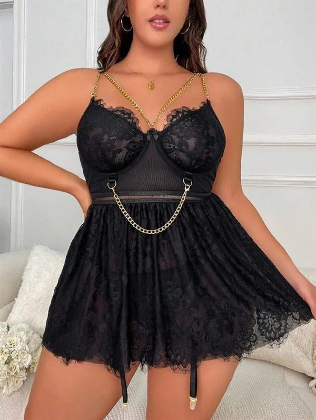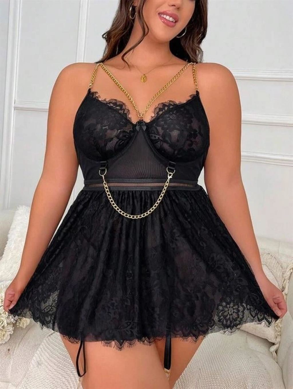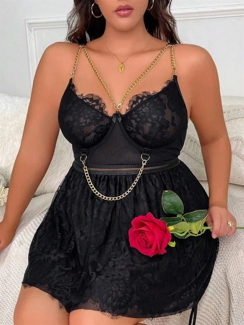 ' Özel Tasarım Büyük Beden Fantezi Zincir Detaylı Dantelli Gecelik', zarif tasarımı ve özel dantel detaylarıyla göz kamaştırıyor. Büyük beden ve özel tasarım olması, her vücut tipine uyum sağlayarak kendinizi özel hissetmenizi sağlar. Yumuşak dokusuyla rahat bir kullanım sunarken, dantel detaylarıyla da göz alıcı bir görünüm sergiler. 'un özel tasarımıyla, zarafet ve şıklığı bir arada bulabilirsiniz. Bu özel ürünle kendinizi şımartmaya ne dersiniz?
