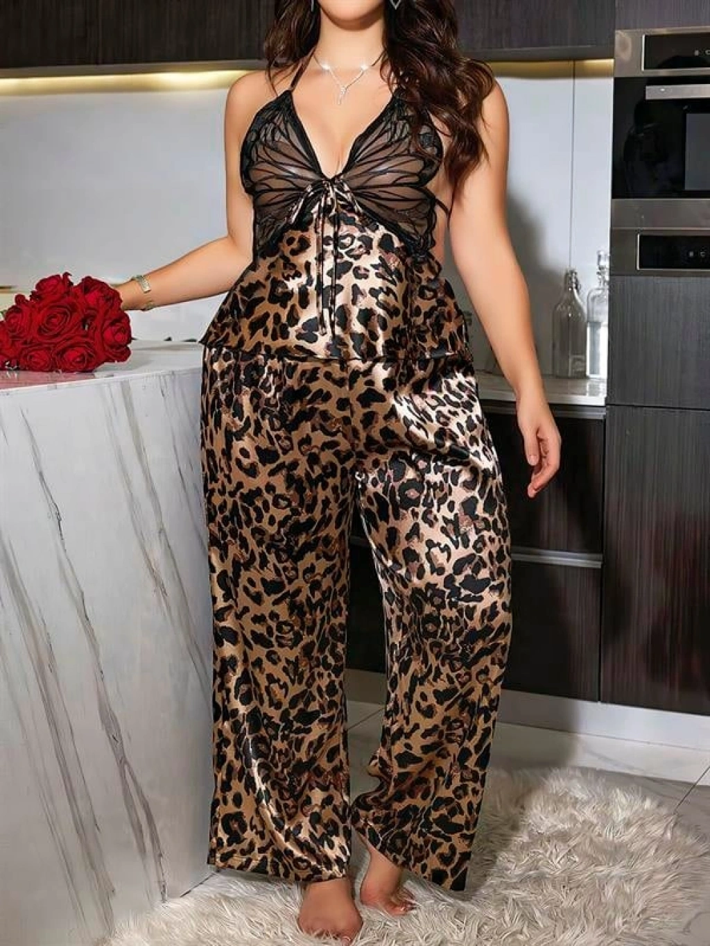 Özel Tasarım Büyük Beden Leopar Desenli İnce Askılı 2'li Saten Pijama Takımı, cesur leopar deseni ile ipeksi saten dokuyu bir araya getirerek hem rahat hem de göz alıcı bir stil sunar. Büyük beden kalıbı, vücut hatlarını nazikçe sararken gün boyu ve gece boyunca konforlu bir kullanım sağlar.