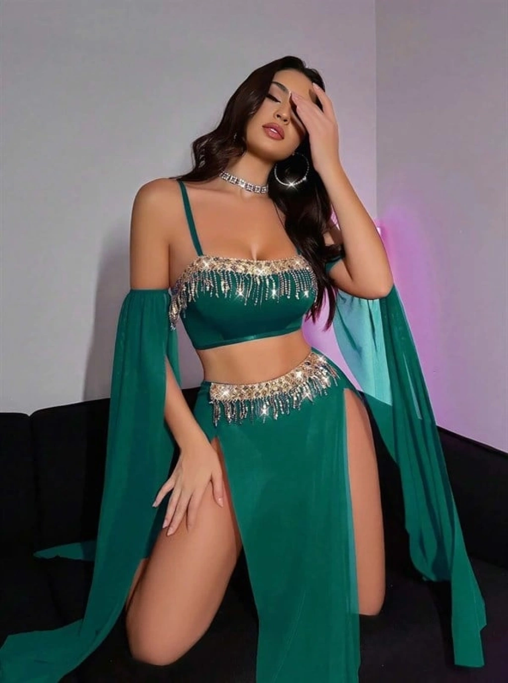 Canlı yeşil tonu ve dikkat çekici detaylarıyla tasarlanan bu özel dansöz kostümü, sahne şıklığını ve enerjik bir görünümü bir araya getirir. Vücuda oturan kesimi hareketlerinizi zarifçe ön plana çıkarırken, özel tasarım detayları kostüme göz alıcı bir stil kazandırır. Hafif ve esnek yapısı sayesinde rahat hareket imkânı sunar. Gösteriler, sahne performansları ve konsept kombinler için ideal bir tercihtir.