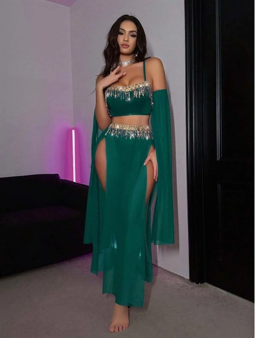 Canlı yeşil tonu ve dikkat çekici detaylarıyla tasarlanan bu özel dansöz kostümü, sahne şıklığını ve enerjik bir görünümü bir araya getirir. Vücuda oturan kesimi hareketlerinizi zarifçe ön plana çıkarırken, özel tasarım detayları kostüme göz alıcı bir stil kazandırır. Hafif ve esnek yapısı sayesinde rahat hareket imkânı sunar. Gösteriler, sahne performansları ve konsept kombinler için ideal bir tercihtir.