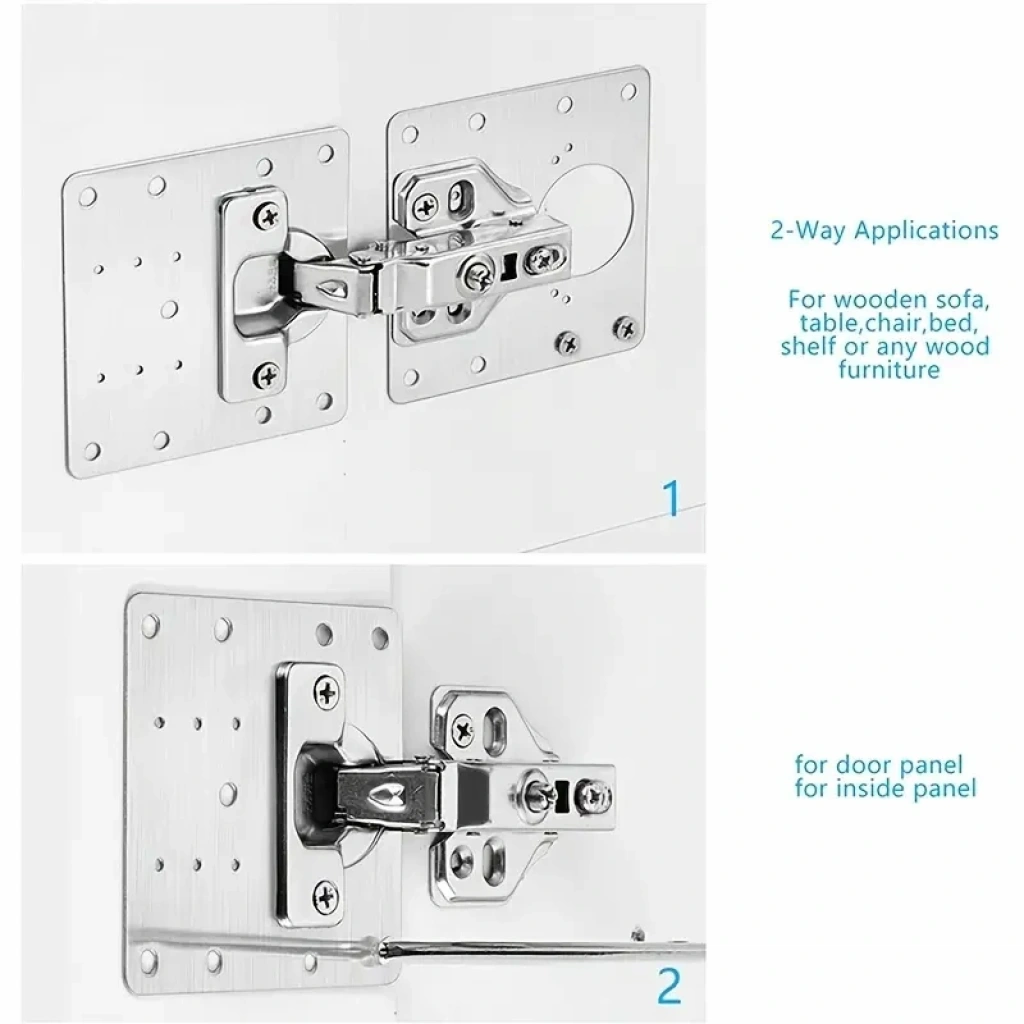 PASLANMAZ ÇELİK MENTEŞE ONARIM PLAKASI“Kusursuz Sabitleme: Dayanıklı Onarım İçin Güçlü Çözüm!”Paslanmaz Çelik Menteşe Onarım Plakası, mutfak iş dolaplarınızda meydana gelen menteşe sorunlarını hızlı ve etkili bir şekilde çözer. Nemden aşınma, sık sık açılıp kapanma veya malzeme kalitesi nedeniyle menteşelerin düzgün sabitlenememesi gibi sorunlara karşı mükemmel bir çözümdür. Geniş yapısı, hasarlı alanı kaplamak için yeterli alan sağlar ve sağlam yapışma ile dayanıklılık sunar.Özellikler: • Malzeme: Paslanmaz Çelik • Boyut: 9 cm x 9 cm • Kalınlık: 0.8 mmKapı panelleri ve yan kapılar dahil tüm dolap kapıları için uygun olan bu onarım plakası, her biri 6 vida ile birlikte gelir ve kolay montaj sağlar. Paslanmaz çelik yapısı sayesinde uzun ömürlü ve estetik bir çözüm sunar.Paket İçeriği: • 1 x Tamir Plakası • 6 x Vida
