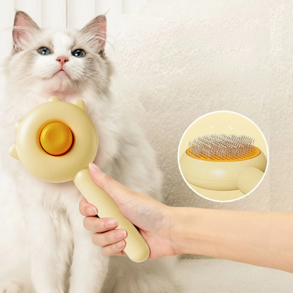 Pati tasarımlı otomatik temizlenen evcil hayvan tarağı, kedi ve köpeklerin tüy bakımını pratik, hızlı ve konforlu hale getirmek için tasarlanmıştır. Ergonomik sapı sayesinde ele rahat oturur ve tarama sırasında kontrolü artırarak hem evcil hayvanın hem de kullanıcının konforunu ön planda tutar. Tarak arkasında bulunan pratik düğme mekanizması, tarama sırasında toplanan tüylerin saniyeler içinde yüzeye itilmesini sağlar ve tek hamlede temizlenmesine imkân tanır. Bu özellik sayesinde tarak üzerinde biriken tüylerle uğraşmadan hijyenik ve zahmetsiz bir kullanım sunar. Yuvarlatılmış tarak uçları, cilde zarar vermeden nazikçe tarama yaparak ölü tüylerin, tozun ve kirin etkili şekilde toplanmasına yardımcı olur. Düzenli kullanımda tüy dökülmesini azaltmaya destek olurken, evcil hayvanın tüylerinin daha bakımlı ve parlak görünmesine katkı sağlar. Günlük bakım rutini için uygun olan bu tarak, ev ortamında kolay kullanım sunar ve evcil hayvan sahipleri için vazgeçilmez bir bakım ürünüdür.Paket İçeriği1 adet Pati Tasarımlı Otomatik Temizlenen Evcil Hayvan Tarağı