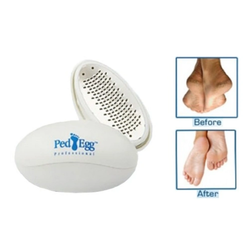 PED EGG TOPUK TÖRPÜSÜ PedEgg kalıntı bırakmadan ayaklarınızı yumuşak ve sağlıklı hissetmenizi sağlayanen etkili yöntem. PedEgg Topuk Törpüsü, topuklardaki ölü deriyi ortadan kaldırıp, topuklarınızınipeksi bir görünüm almasını sağlar. PedEgg sahip olduğu ergonomik ve avuç içine tam oturan tasarımı ile size çok kolaybir kullanım sağlıyor! Ped EggTopuk Törpüsü Paket İçeriği 1adet ped egg topuk törpüsü seti