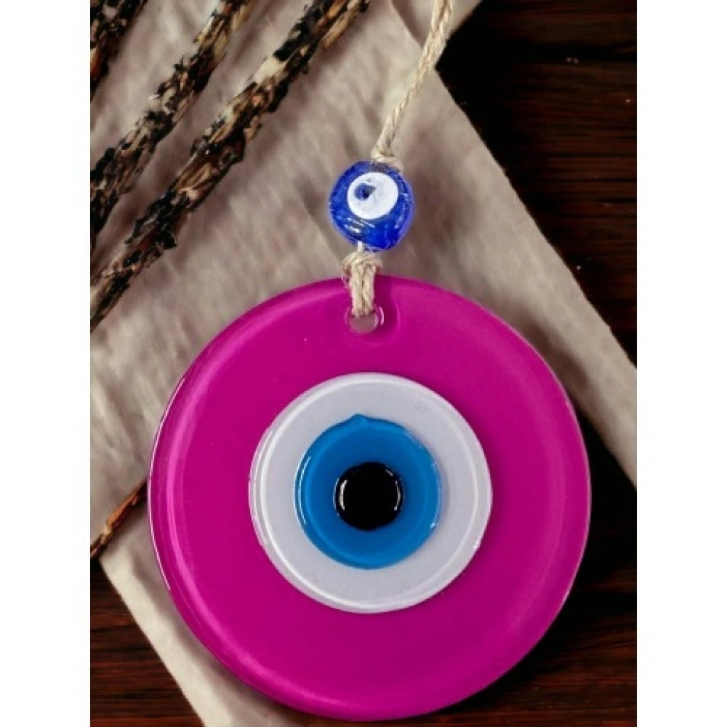 Mini boy pembe renk nazar boncuklu duvar süsümüz tamamen el işçiliği ile üretilmiştir. Tasarım harikası el yapımı nazar boncuklu duvar süsümüz 10 x 10 santimetre ölçülerindedir. Ürünümüz ip dahil 23 santimetre boyundadır.