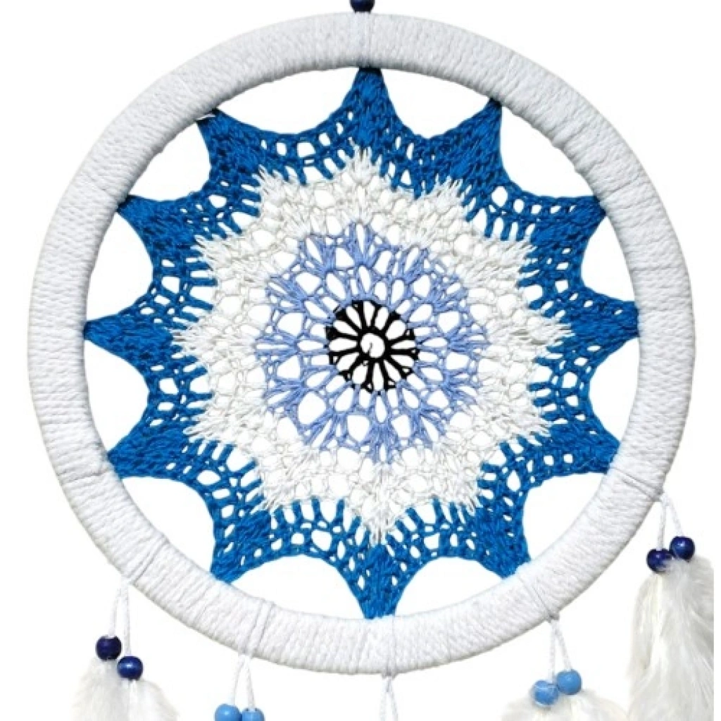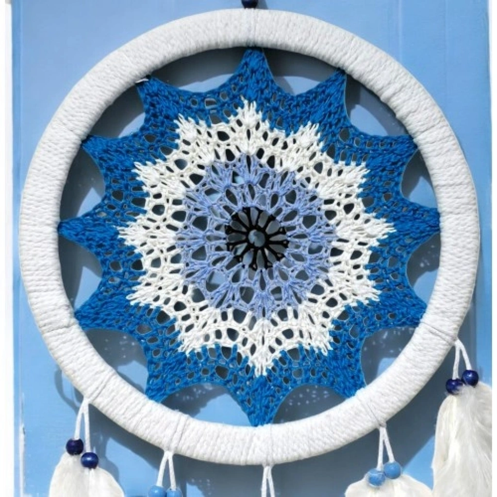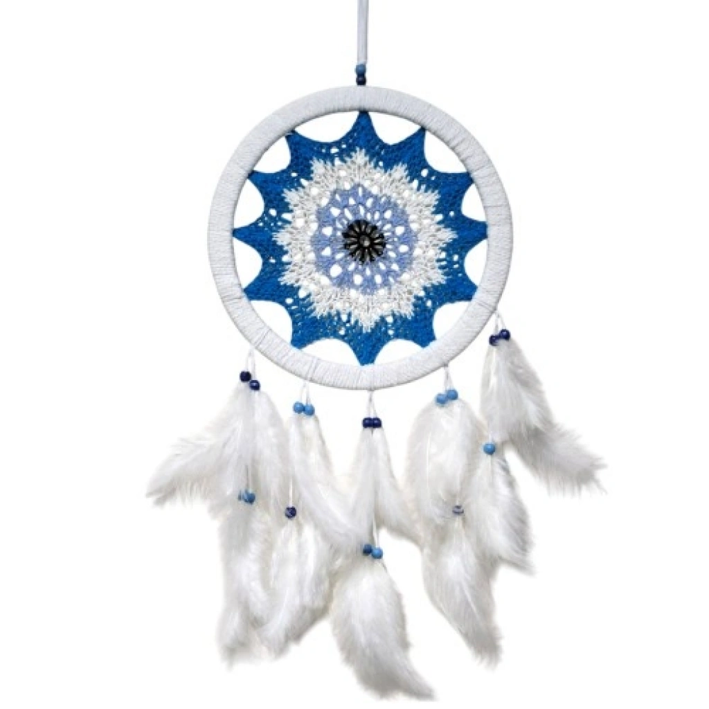 Petrol Mavisi Nazar Motifli Kuş Tüylü Duvar SüsüPetrol, derinliği ve asaleti simgeleyen petrol mavisi tonlarıyla tasarlanan bu nazar motifli kuş tüylü duvar süsü, hem modern hem de geleneksel dekorasyonlara uyum sağlayan özel bir dekoratif üründür. Nazar motifi, kötü enerjilere karşı koruyucu bir anlam taşırken kuş tüyleri tasarıma hafiflik ve zarafet katar.Ürünümüzde doğal ip kullanılmakta olup kuş tüyleriyle özenle süslenmiştir. El emeğiyle hazırlanan detaylar, ürüne bohem ve sıcak bir karakter kazandırır. Doğal malzemelerle üretilmiş olması sayesinde her ürün kendine özgü bir görünüm taşır ve benzersizdir.Nazar motifli duvar süsümüzün yuvarlak ana gövdesi 28 santimetre çapındadır. İp dahil toplam uzunluğu yaklaşık 70 santimetredir. Büyük ve dikkat çekici ölçüsü sayesinde duvarda etkileyici bir dekoratif odak noktası oluşturur.Salon, antre, yatak odası, ofis ve bohem tarz dekorasyonlar için ideal olan bu kuş tüylü duvar süsü; yeni ev hediyesi, özel günler ve nazar temalı dekorasyonlar için şık ve anlamlı bir hediyelik alternatifi sunar.
