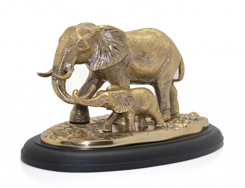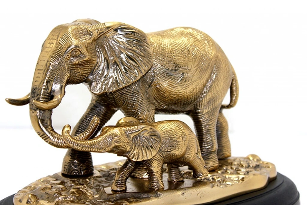 Pirinç malzemeden üretilmiş bu zarif fil bibloları, büyüleyici bir tasarıma sahip olup, anne ve yavru fili simgelemektedir. 35x20 cm boyutunda olan bu obje, altın rengiyle zarif bir görünüm sunar. Hem evde hem ofiste şık bir dekorasyon parçası olarak kullanılabilir. Fil figürü, sevgi ve bağlılık sembolü olarak popüler bir koleksiyonluk parça olmasının yanı sıra, hediye olarak da oldukça idealdir.Paket İçeriği1 Adet Pirinç Fil Biblosu