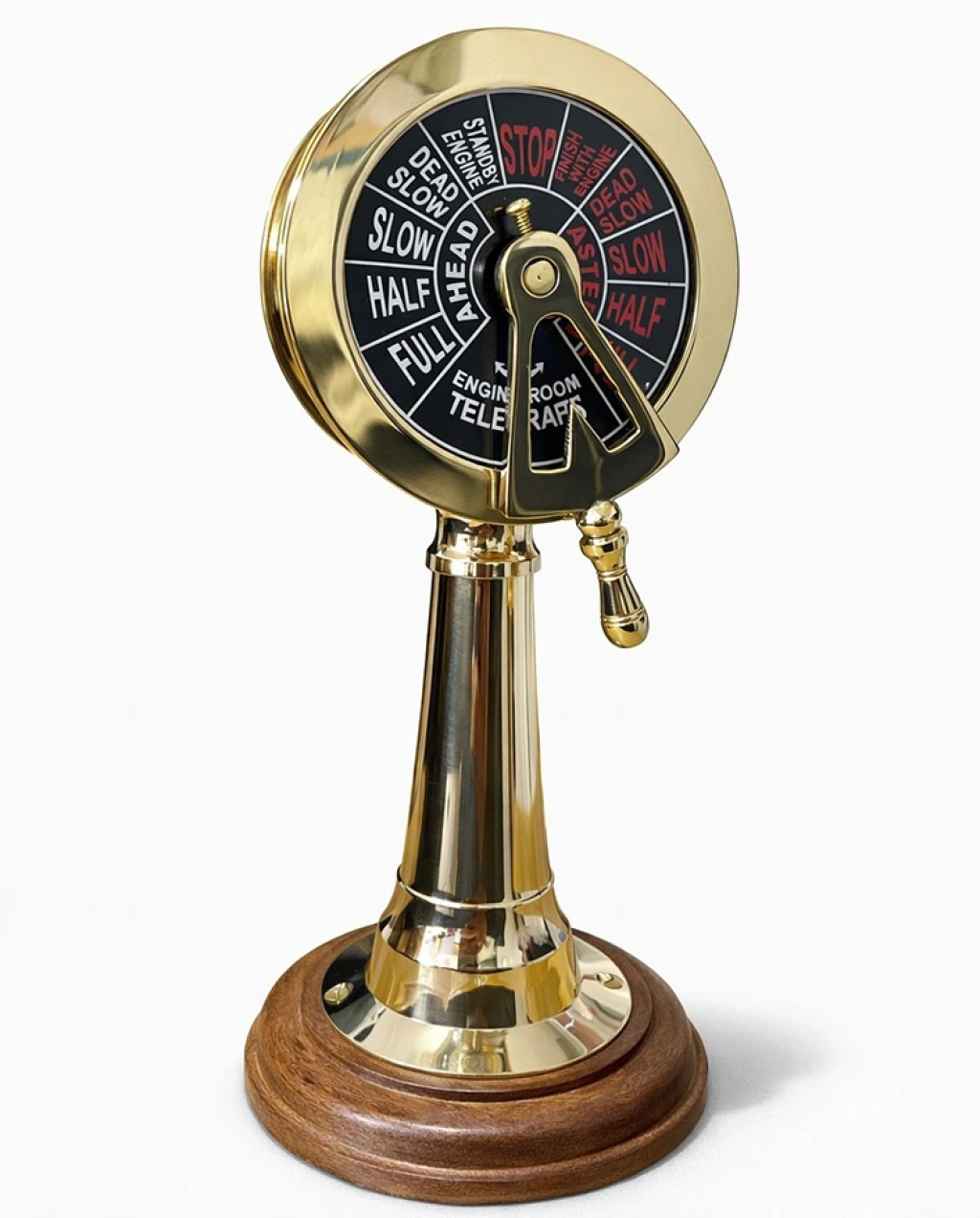 Pirinç Makina Telgrafı, denizcilik tarihinin en ikonik iletişim araçlarından birini ev ve ofis dekorasyonunuza taşıyan, el işçiliği detaylarıyla zenginleştirilmiş prestijli bir aksesuardır. 23x9 cm boyutlarındaki bu özel tasarım, gemi kaptan köşkünden makine dairesine komut göndermek için kullanılan orijinal telgrafların estetik bir minyatür formudur. Pirinç görünümlü kaliteli malzeme kullanılarak üretilen gövdesi, antik gold ışıltısıyla bulunduğu ortama nostaljik ve asil bir hava katar. Ürünün altında yer alan dairesel ahşap stand, parlak metalik yüzey ile doğal dokunun kusursuz uyumunu sunarken ürünün dengeli ve şık bir şekilde sergilenmesini sağlar. Kadran üzerindeki net komut yazıları ve hareketli kol mekanizması, ürünün otantik karakterini güçlendirerek gerçekçi bir deneyim sunar. Bu dekoratif makine telgrafı, marin temalı mekanlar, çalışma odaları veya kütüphaneler için eşsiz bir tamamlayıcıdır. Hem deniz tutkunları hem de antika meraklıları için unutulmaz bir hediyelik eşya seçeneği olan bu biblo, geleneksel denizcilik estetiğini kaliteli işçilikle birleştirir. Bulunduğu her ortamda dikkat çekici bir odak noktası oluşturan bu pirinç dekor objesi, kaliteden ödün vermeyenler için tasarlanmıştır. Ürün Teknik Özellikleri ÖzellikAçıklama Ürün AdıPirinç Makina Telgrafı Boyut23x9 cm MalzemePirinç Görünümlü Kaliteli Metal ve Ahşap Kaide TasarımGeleneksel Gemi Makine Telgrafı Formu RenkParlak Pirinç / Antik Gold ve Kahverengi StilMarin / Vintage / Klasik Dekorasyon Kullanım AlanıOfis, Çalışma Odası, Vitrin, Koleksiyon Paket İçeriği1 Adet Pirinç Makina Telgrafı