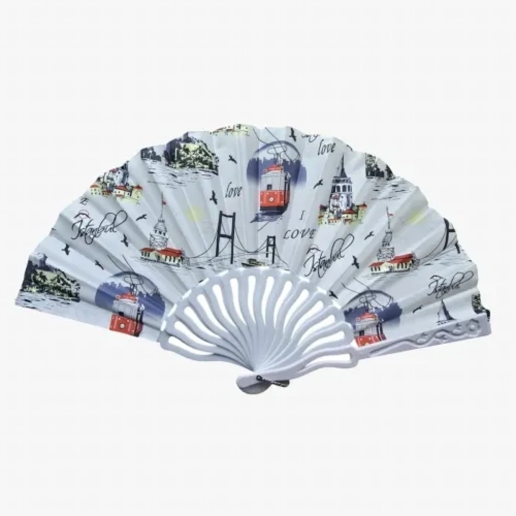 Paket İçeriği: 12 Adet Yelpaze.Tasarım: İstanbul'un Galata Kulesi, Kız Kulesi ve tramvay gibi ikonik yapılarını içeren tematik desenler. Yelpaze üzerinde "I Love Istanbul" yazısı da yer almaktadır.Ana Renk: Beyaz kumaş üzerine çok renkli desenler.İskelet Rengi: Genellikle beyaz plastik iskelet.Malzeme: Dayanıklı Plastik İskelet ve Estetik Kumaş Kaplama.Taşınabilirlik: Kolayca katlanabilir, hafiftir ve çantada rahatlıkla taşınabilir.Kullanım AlanlarıTuristik Hediyelik Eşya: İstanbul'a gelen turistler için pratik ve anlamlı bir hediyelik ürün olarak.Özel Etkinlikler: İstanbul temalı düğünler, kına geceleri, nişan davetleri veya fuarlarda misafirlere sunulacak özgün bir hediyelik olarak.Kişisel Kullanım: Yaz aylarında günlük serinleme ve aynı zamanda şehre olan sevginizi gösterme amaçlı olarak.Dekorasyon: Türkiye veya şehir temalı vitrin ve iç mekan dekorasyonlarında kullanılmak üzere.Paket İçeriği12 Adet İstanbul Desenli Plastik Kumaş Yelpaze Seti.
