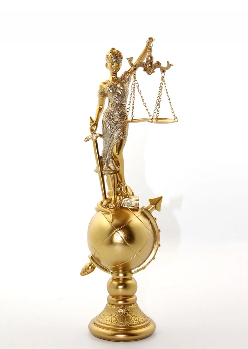 Polyester Dünya Küre Üzerinde Adalet Biblosu Model 2, adaletin sembolü olarak tasarlanmış bir figürdür. Gözleri bağlı bir kadın figürü, terazi ve kılıç ile birlikte dünya küresinin üzerinde yer alır. Altın ve gümüş detaylarla işlenmiş bu zarif figür, adaletin simgesini görsel olarak sunarken, şıklık ve anlam taşır. Yüksek kaliteli polyester malzeme ile üretilmiş olup, estetik tasarımı ile ofisler veya evler için mükemmel bir dekorasyon öğesidir.Paket İçeriği1 Adet Polyester Dünya Küre Üzerinde Adalet Biblosu Model 2