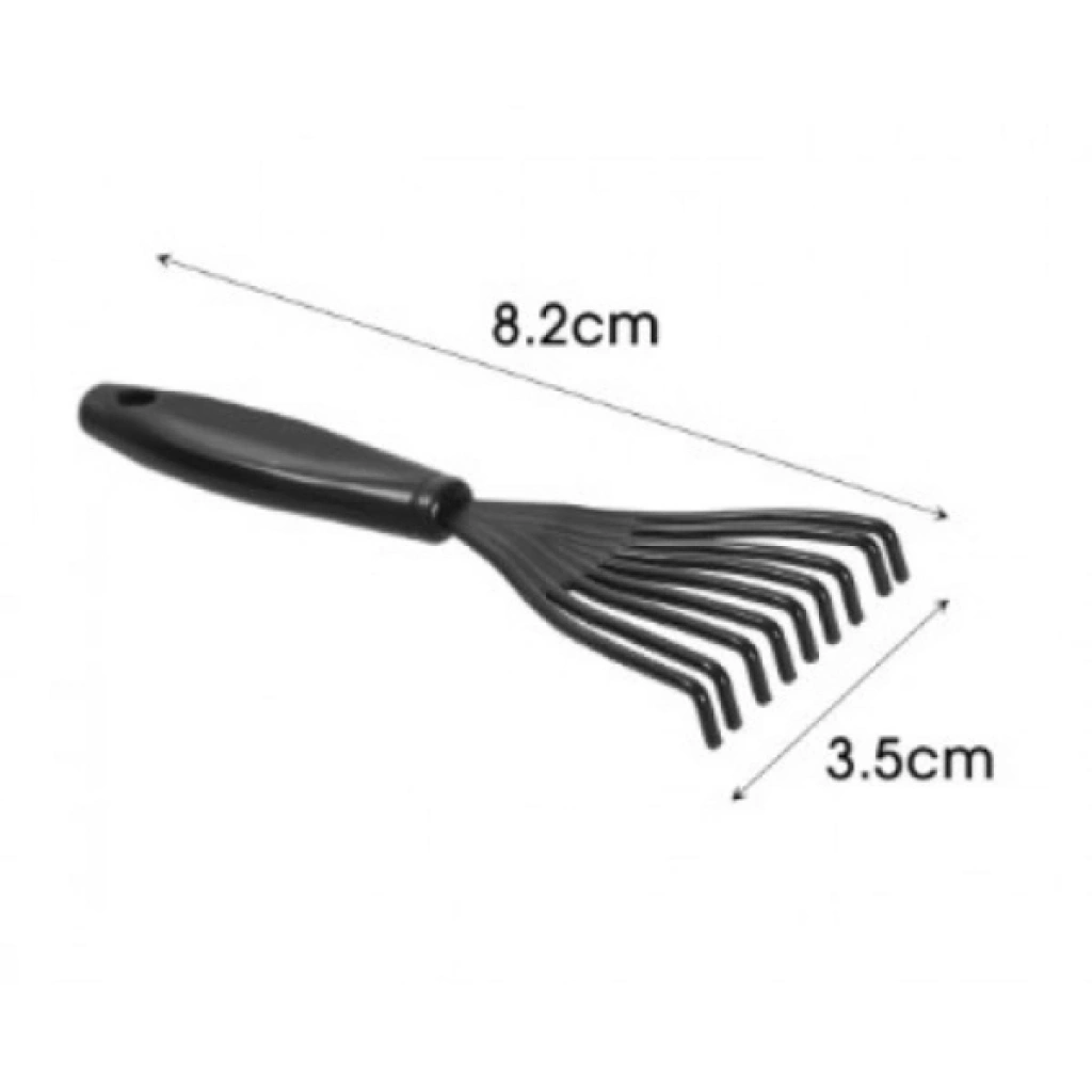 Pratik Saç Fırçası ve Tarak Temizleme Aparatı, saç fırçaları ve taraklarda biriken saç, toz ve kalıntıları kolayca temizlemek için tasarlanmış özel bir yardımcı üründür. Ergonomik sapı ve kavisi sayesinde elde rahat tutulur, fırça diplerine derinlemesine ulaşan ince tırmık uçlarıyla saç kalıntılarını tek hamlede toparlar. Tarak ve fırça temizliğinde en çok rahatsızlık veren dip bölgelere etkili şekilde erişerek biriken saçları, tüyleri ve kiri hızlıca temizler. Hem kişisel kullanım için idealdir hem de kuaför salonları için profesyonel hijyen desteği sunar. Kullanımı oldukça basittir; tırmık uçlarını fırça tabanına doğru bastırıp yukarı doğru çektiğinizde saç kalıntıları kolayca toplanır ve hijyenik bir kullanım sağlanır. Düzenli temizlik ile fırçalarınız ilk günkü görünümüne kavuşur ve kullanım ömrü uzar. Ürün 8.2 x 3.5 cm boyutlarındadır ve kompakt yapısıyla çekmece veya çantalarda rahatlıkla saklanabilir. Pakette iki adet tırmık temizleme aparatı bulunur.Paket İçeriği2 Adet Pratik Saç Fırçası ve Tarak Temizleme Aparatı