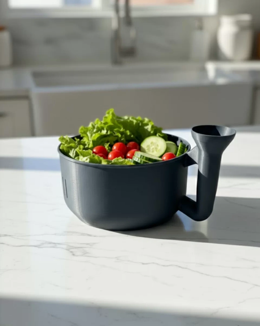 Mutfağınızda hem zamandan tasarruf etmek hem de sebze ve meyvelerinizi hijyenik şekilde temizlemek istiyorsanız, bu pratik sebze yıkayıcı tam size göre. Modern ve ergonomik tasarımı sayesinde yıkama, süzme ve servis aşamalarını tek bir üründe birleştirir. Geniş haznesi, maruldan salatalığa, domatesten üzüm ve çileğe kadar birçok farklı sebze ve meyveyi rahatlıkla yıkamanıza olanak tanır.İç kısmında bulunan özel süzgeç kanalları sayesinde suyu hızlı ve etkili şekilde tahliye eder. Böylece yıkama işlemi sonrasında ekstra süzgeç kullanmanıza gerek kalmaz. Alt bölümde yer alan yükseltilmiş merkez tasarımı, sebzelerin doğrudan su içinde beklemesini engelleyerek daha sağlıklı bir temizlik sağlar.Ergonomik sap detayı ise ürünü rahatça tutmanıza ve kontrollü şekilde su boşaltmanıza yardımcı olur. Dayanıklı ve kaliteli malzemeden üretilmiş yapısı uzun ömürlü kullanım sunar. Minimal ve modern siyah tasarımı mutfağınıza şık bir dokunuş kazandırır.Hem pratik hem estetik bir mutfak çözümü arayanlar için vazgeçilmez bir yardımcıdır.